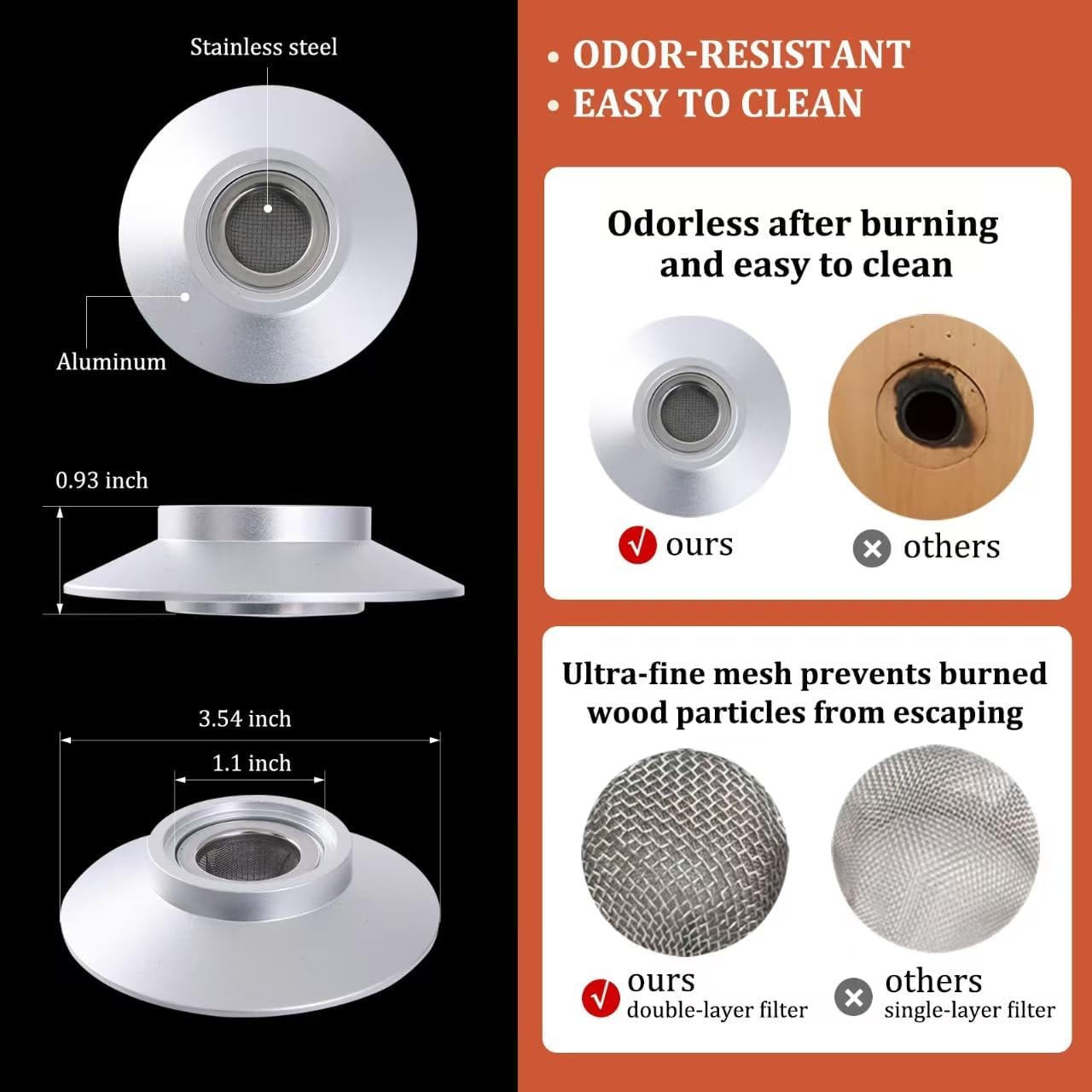 - COMPLETE SMOKING KIT WITH PREMIUM ACCESSORIES:This Whiskey Smoker Kit includes a metal expansion plate (fits cups or containers up to 4.8 inches), an adjustable flame lighter, and 6 natural wood chip flavors (Cherry, Apple, Pear, Walnut, Oak, and Beech)—free from artificial additives. The wood chips burn quickly, producing rich smoke and authentic flavors. The thick stainless steel filter prevents ash or wood chips from falling, ensuring a mess-free experience.