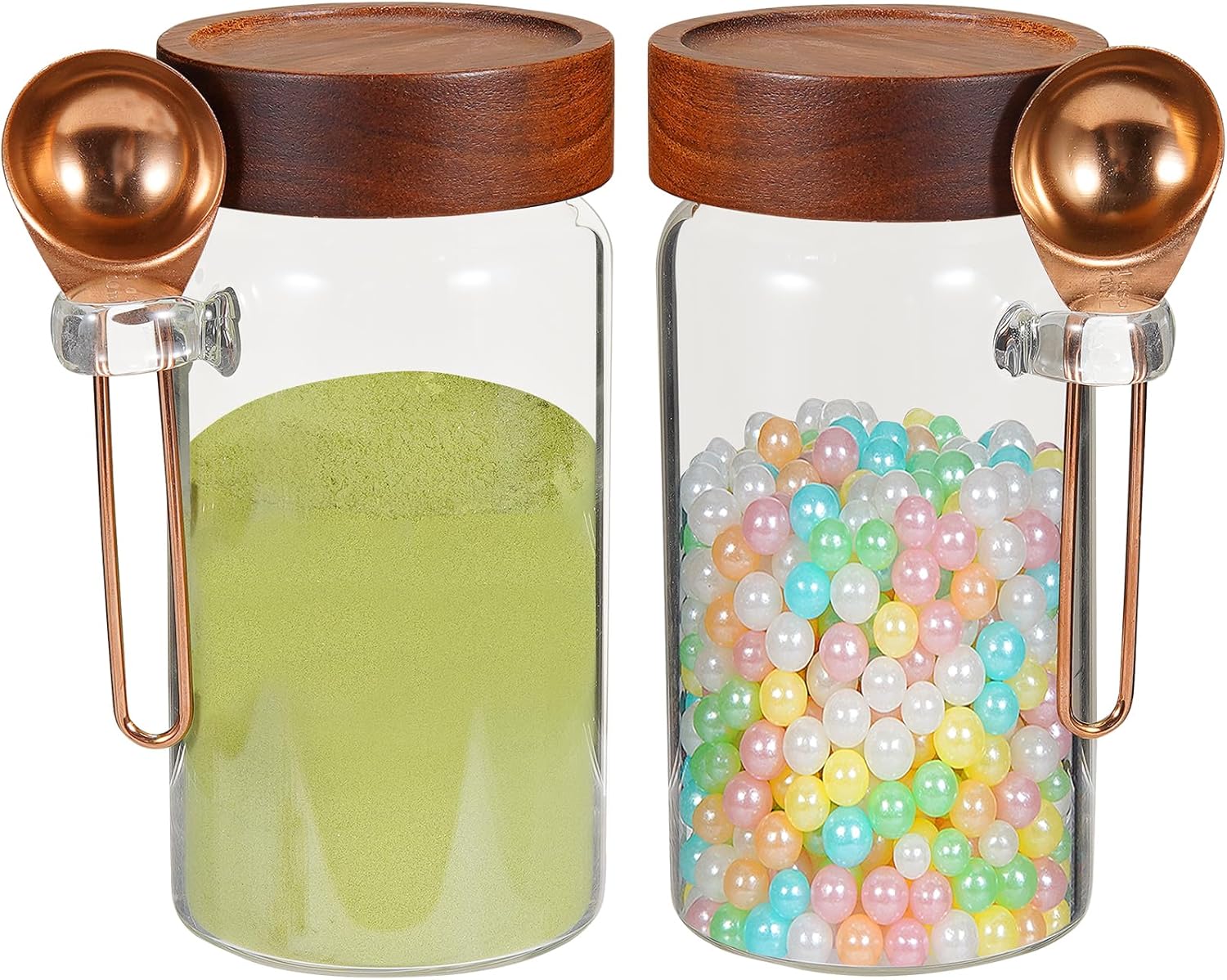 - 【PRACTICAL SPOON】 Decorative clear jars with lids and scoop ,stainless steel coffee long scoop (measuring 15ml) very labor-saving and get the job done easily.Home Storage Organization for powder,personal items such as lotions, bath salts,laundry detergent, laundry detergent beads, laundry gel beads, etc.. It is stored in a clean, tidy and space-saving.