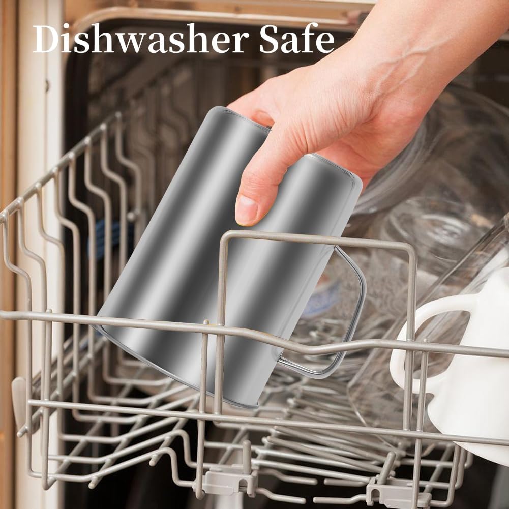 - The stainless measuring cup is dishwasher safe and easy to clean. It is lighter than glass and dries quickly without having to worry about water spots.