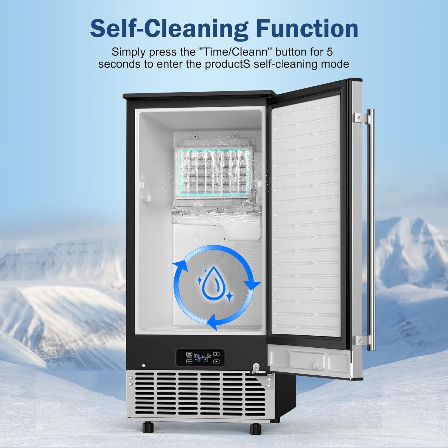 - 【Timer Function & Adjustable Ice Thickness】With a 24-hour timer, you can schedule the under counter ice maker to start or stop at your preferred times. Adjust the ice-making time to achieve your desired ice thickness, whether for smoothies, cocktails, or whiskey.
