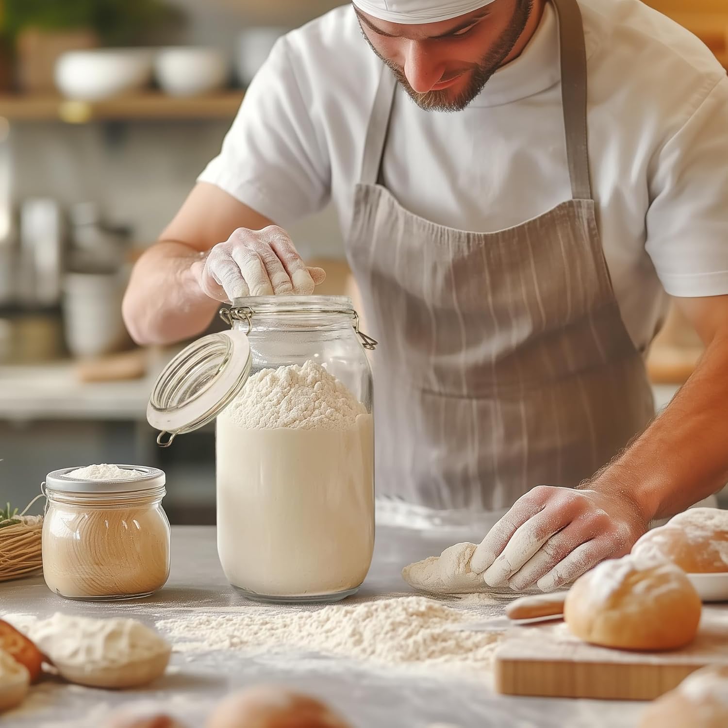 - Sturdy Food-Grade Glass: These flour sugar storage containers are made from premium food-grade glass, ensuring safe storage of your ingredients. The thick and sturdy construction enhances durability and stability, providing you with long-lasting use