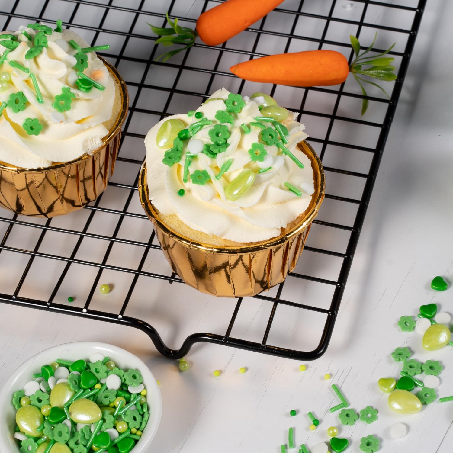 - Sprinkles for Cake Decorating: These cake sprinkles mixes are classy for Easter and Spring cakes. And you can also use them to embellish cookies, cupcakes, ice cream, fondant and pastries for added allure. Decorating your favorite baked dessert with our mixing-colors lustrous Green Edible Egg Candy will surely elevate your presentation.