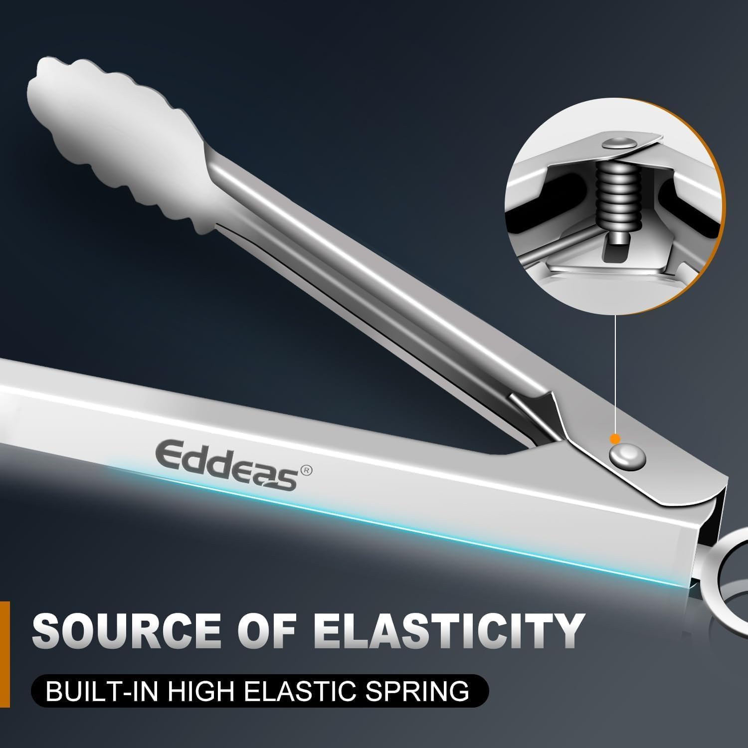 - Heat Resistant Up To 600°F - Eddeas Heavy Duty BBQ tongs heat resistant up to 600°F, Cooking tongs have ergonomic handles to ensure good grip and control, avoid burns and provide greater comfort. The metal tongs are super heat resistant and easy to clean, simply hand wash or put in the dishwasher.