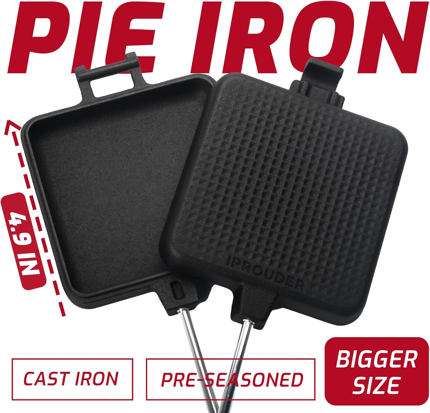 - Designed for Outdoor Camping Cooking: IPROUDER Pie Maker creates mountain pies, pudgy pies, and campfire classics with even heat distribution from heavy-duty cast iron