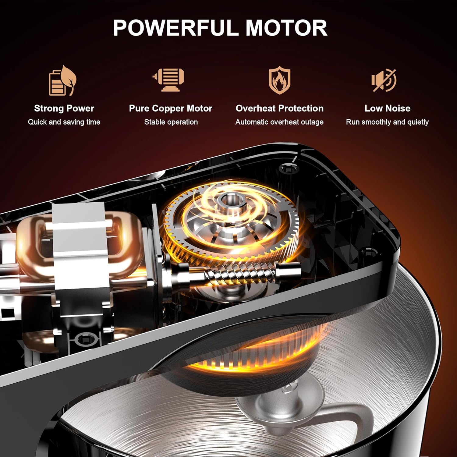 - Tilt-Head Design & Anti-Slip Suckers: The tilt-head electric mixer provides easy access to the accessories and stainless steel bowl. The 4 suction suckers on the base can be firmly attached to the table to maintain the stability of the mixer