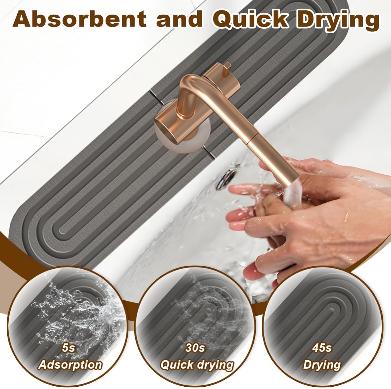 Faucet Mat for Kitchen Sink, Diatomite Super Absorbent Fast Drying Stone Sink Tray for Bathroom Kitchen Sink Splash Guard(Round Dark Grey,23.6x3.9in)