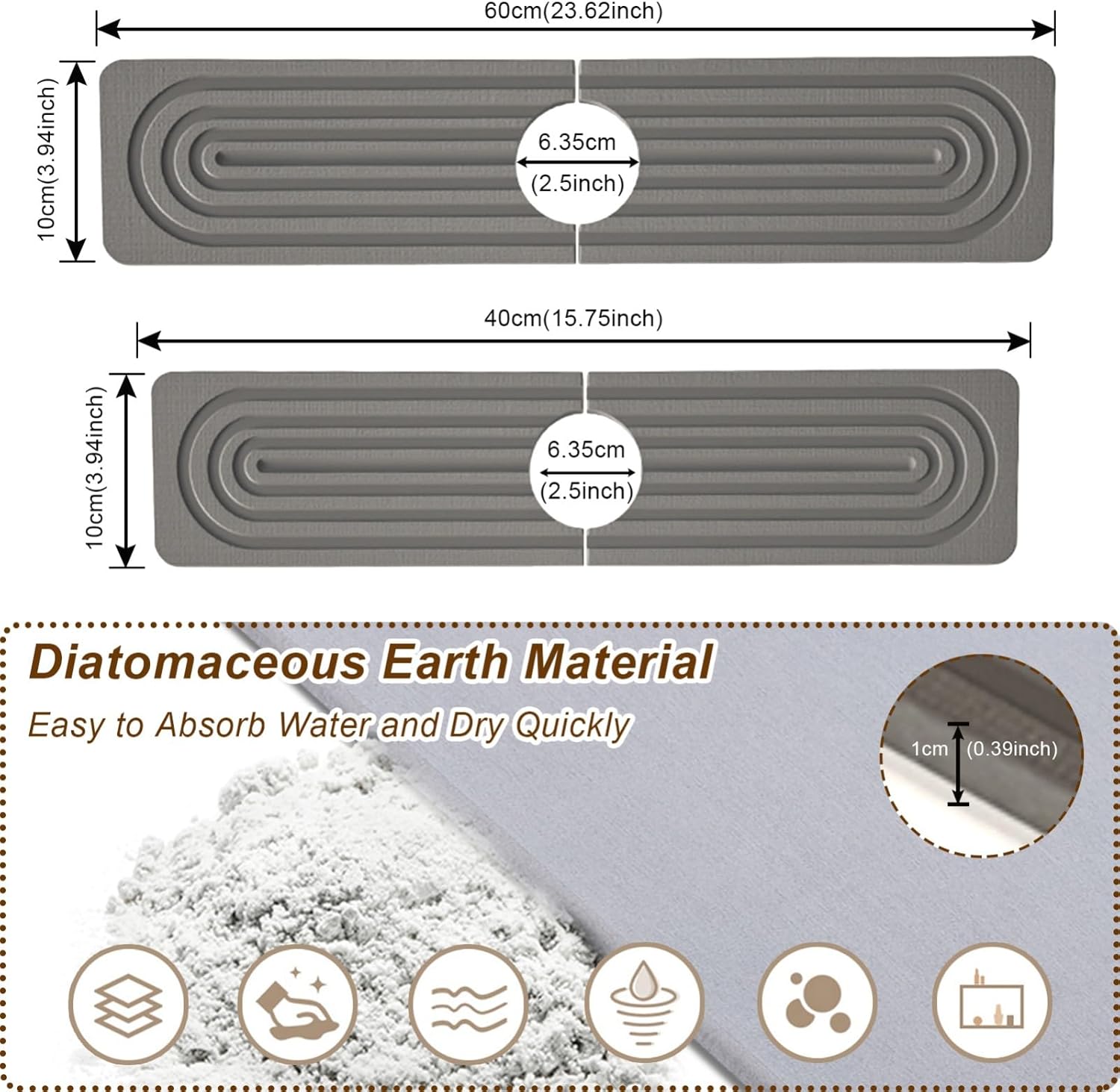 Faucet Mat for Kitchen Sink, Diatomite Super Absorbent Fast Drying Stone Sink Tray for Bathroom Kitchen Sink Splash Guard(Square Dark Grey,15.7x3.9in)
