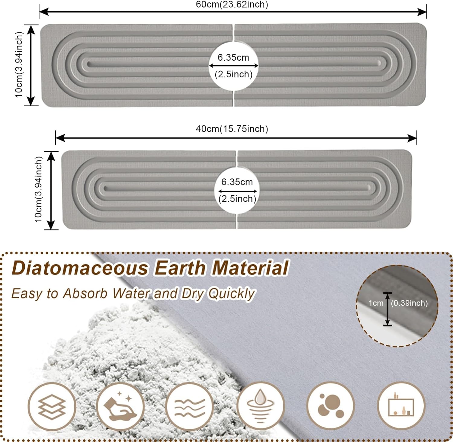 Faucet Mat for Kitchen Sink, Diatomite Super Absorbent Fast Drying Stone Sink Tray for Bathroom Kitchen Sink Splash Guard(Square Grey,15.7x3.9in)