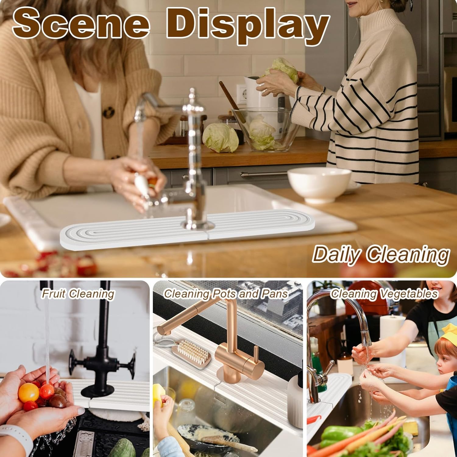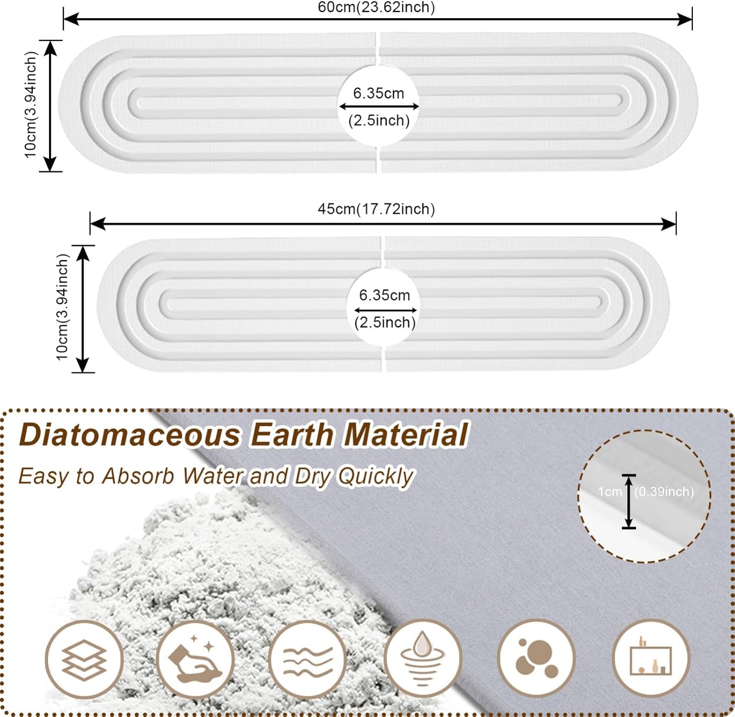 Faucet Mat for Kitchen Sink, Diatomite Super Absorbent Fast Drying Stone Sink Tray for Bathroom Kitchen Sink Splash Guard(Round White,23.6x3.9in)
