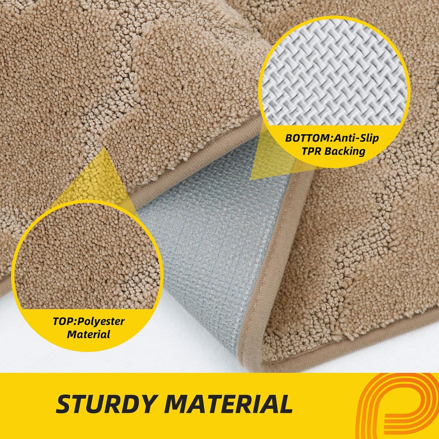 JSEI Kitchen Rugs, Non-Slip Kitchen Mats for Floor, Soft Washable Absorbent Kitchen Mats 2 Pieces, Kitchen Carpet Runner with TPR Backing, Polyester, 24”x36”+24”x60”, Beige