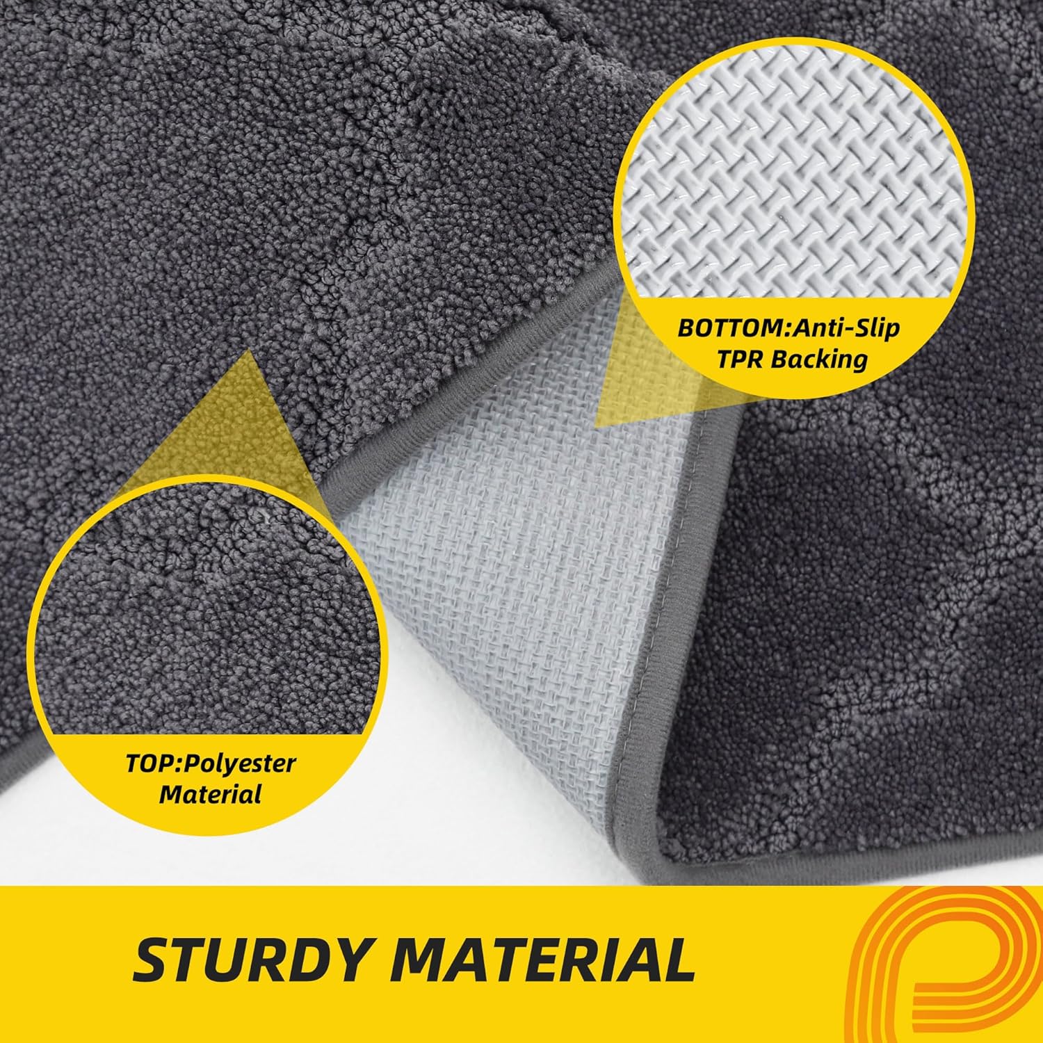 JSEI Kitchen Rugs, Non-Slip Kitchen Mats for Floor, Soft Washable Absorbent Kitchen Mats 2 Pieces, Kitchen Carpet Runner with TPR Backing, Polyester, 24”x36”+24”x60”, Dark Grey