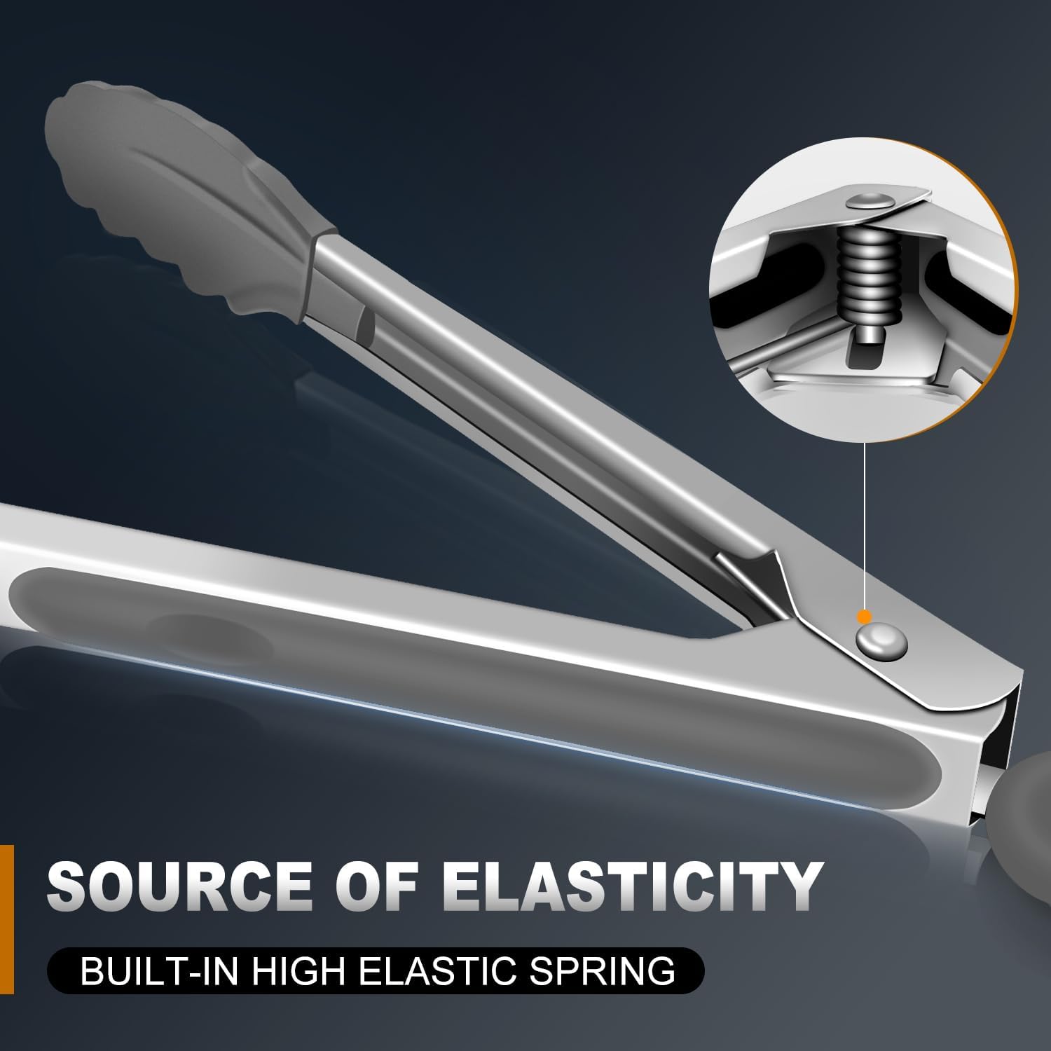 - EMBEDDED DESIGN, BUILT TO LAST - Kitchen tongs The silicone tip and stainless steel handle are integrated to provide the best grip and control without bending or breaking, thickened stainless steel, easily grab even heavy items like burgers and meat; perfect for use on pans, stovetops, and ovens, rust resistant and designed for long lasting use, dishwasher safe