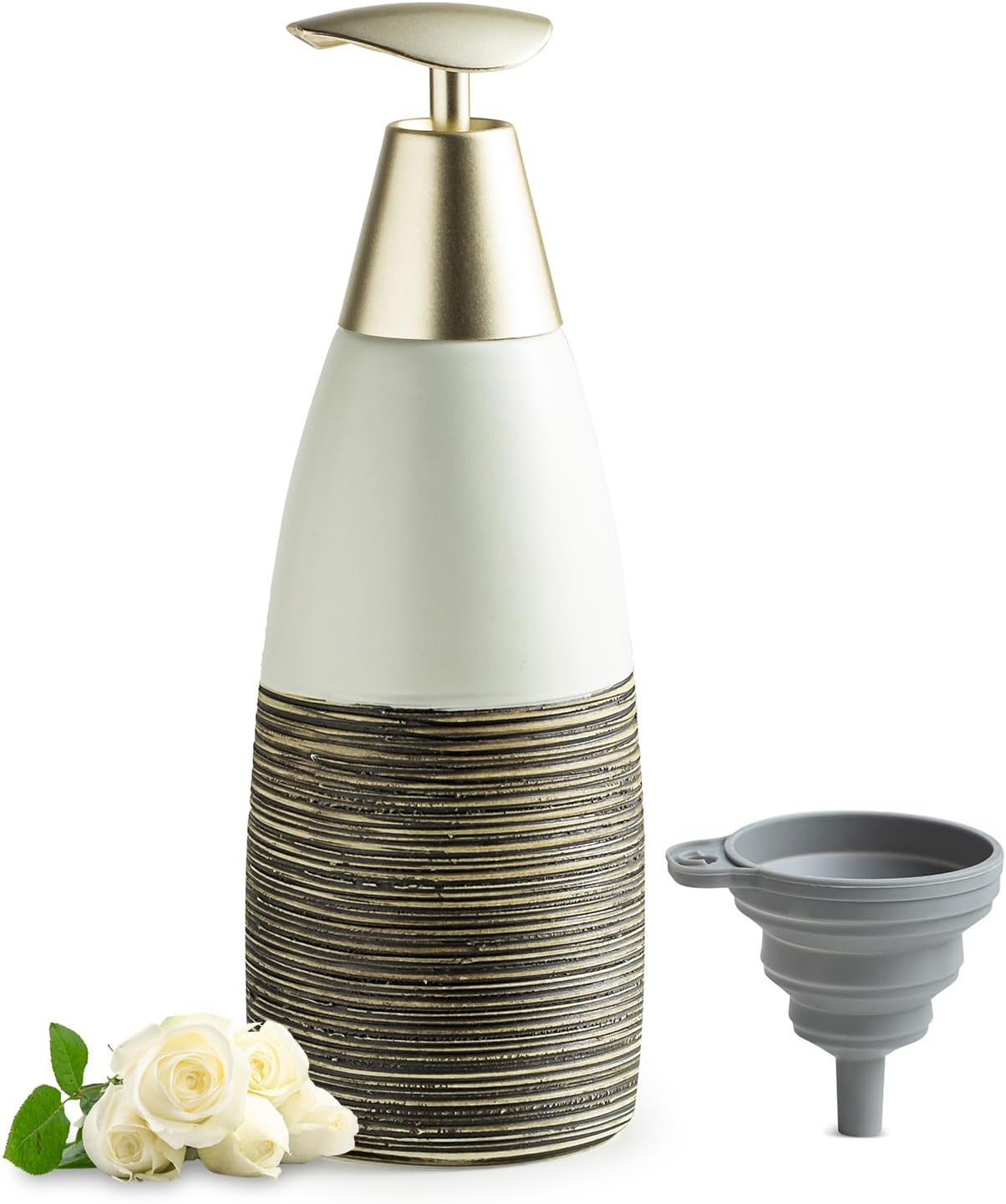 Dish Soap Dispenser Ceramic Liquid Dispenser for Bathroom Hand Soap Bottle with Pump, 12oz Refillable Liquid Bottle for Body Wash, Shower Gel, White