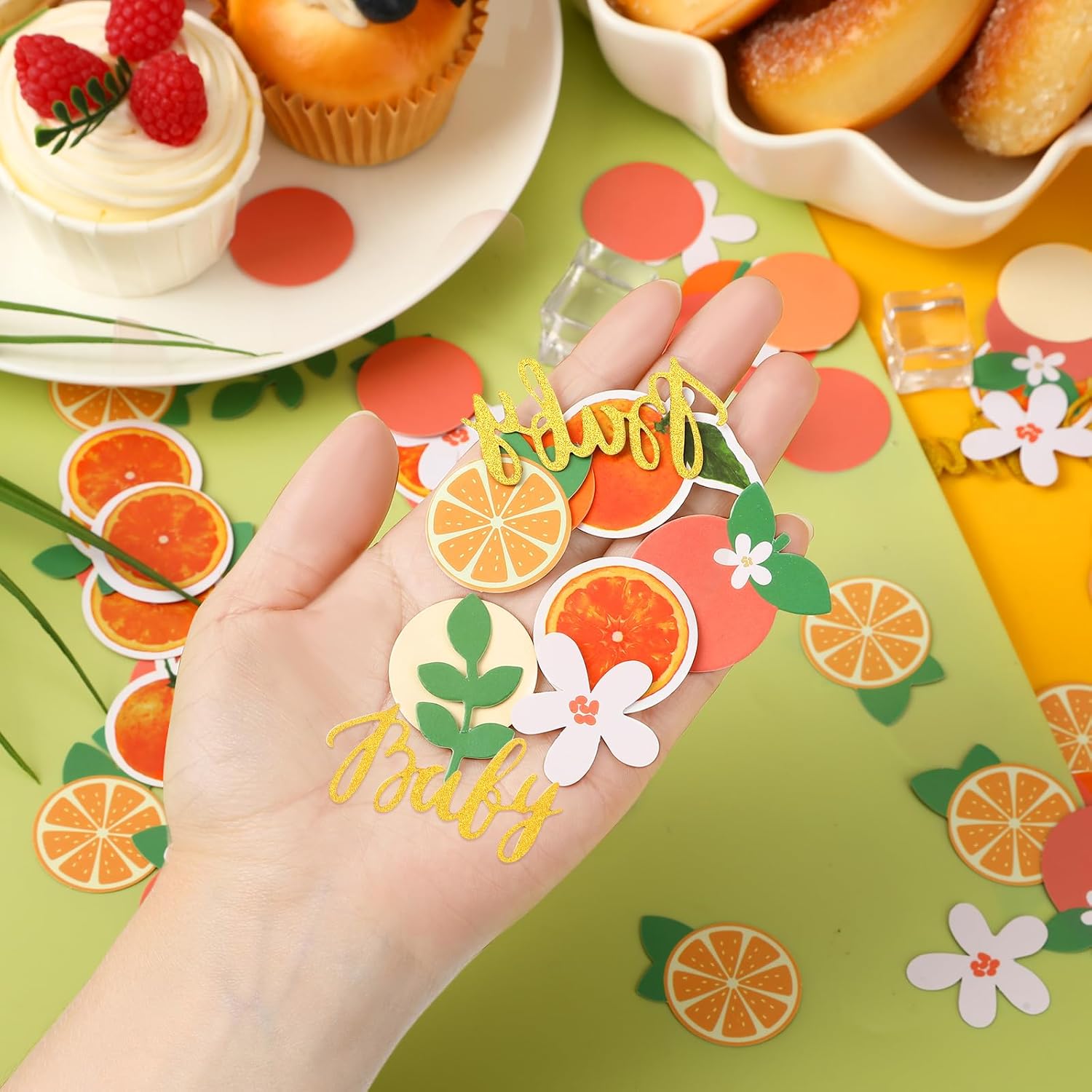 MARFOREVER 500 Pcs Little Cutie Baby Shower Confetti Citrus Decoration Orange Baby Shower Confetti Tangerine Eucalyptus Scatter for Gender Reveal Birthday Party Table Decoration Supplies