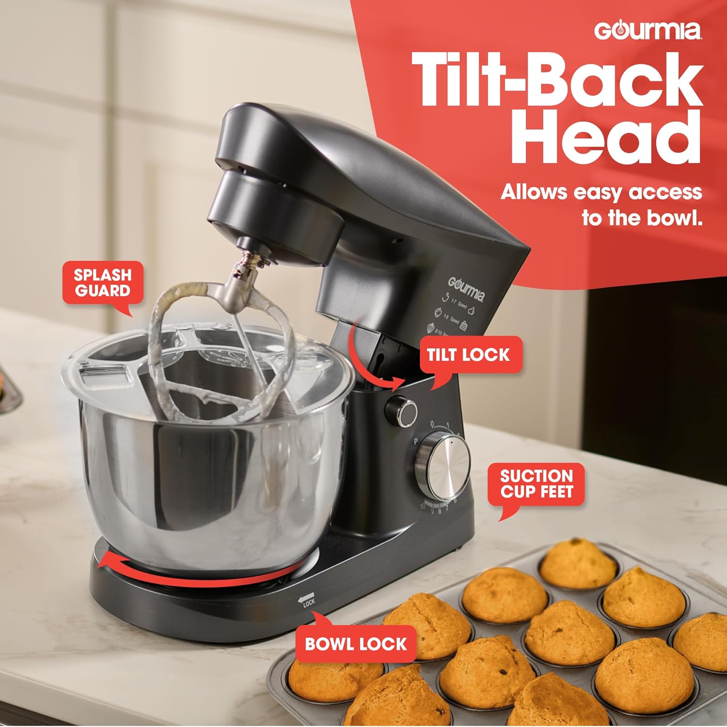 - A GREAT GIFT FOR HOME BAKERS – Lightweight base is easy to move but sturdy enough to stay put during mixing. Compact design fits neatly on the countertop or in a kitchen cabinet. Backed by 1 Year Gold Standard Warranty + 2 more years once registered.