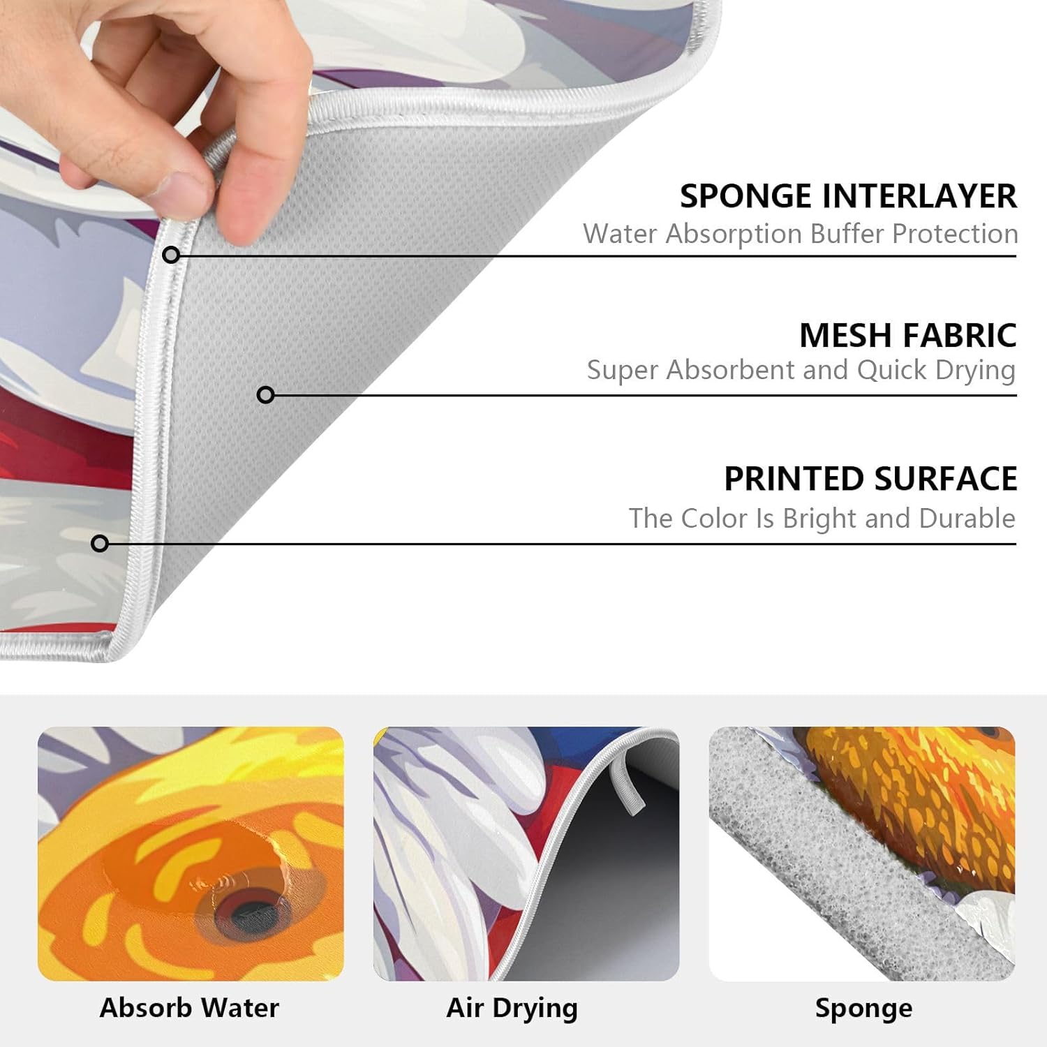 Daisy Flowers and American Flag Dish Drying Mat for Kitchen Ccounter Absorbent Microfiber Small Drying Pad Dish mats for Kitchen Countertops 16 x 18 Inch
