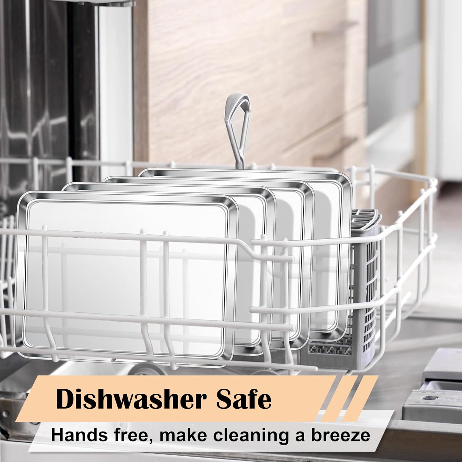 - DURABLE & WARP FREE: One-piece metal structure with a mirror finish enhance hardness, wear resistance and rust protection, Thick rimmed edges prevent warping to ensure durability for long-lasting use, Toaster oven/air fryer/dishwasher/freeze safe