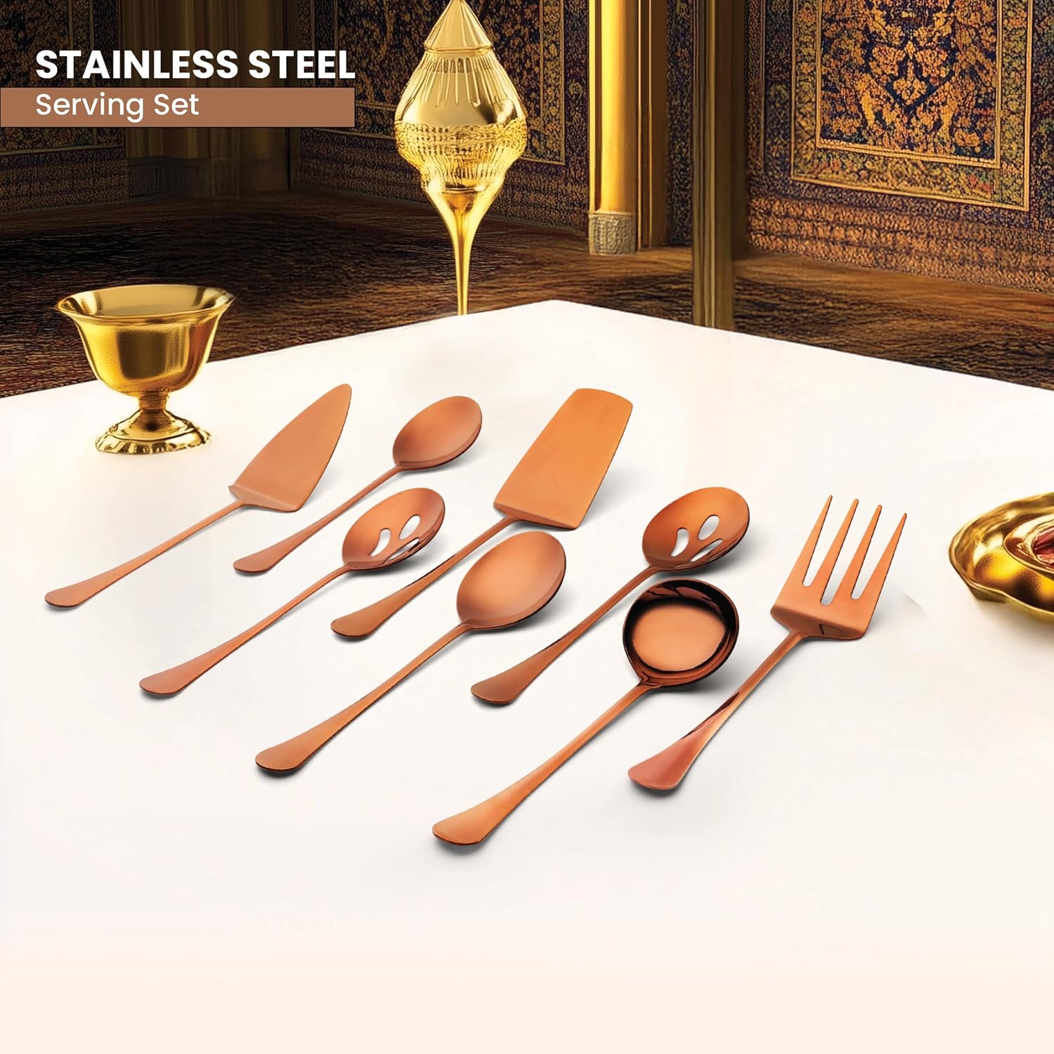 Avador® Premium Set of 8 Stainless Steel Hostess Serving Utensil Tool Set for Weddings | Buffer | Party | Kitchen | Restaurants (Rose Gold Plated)