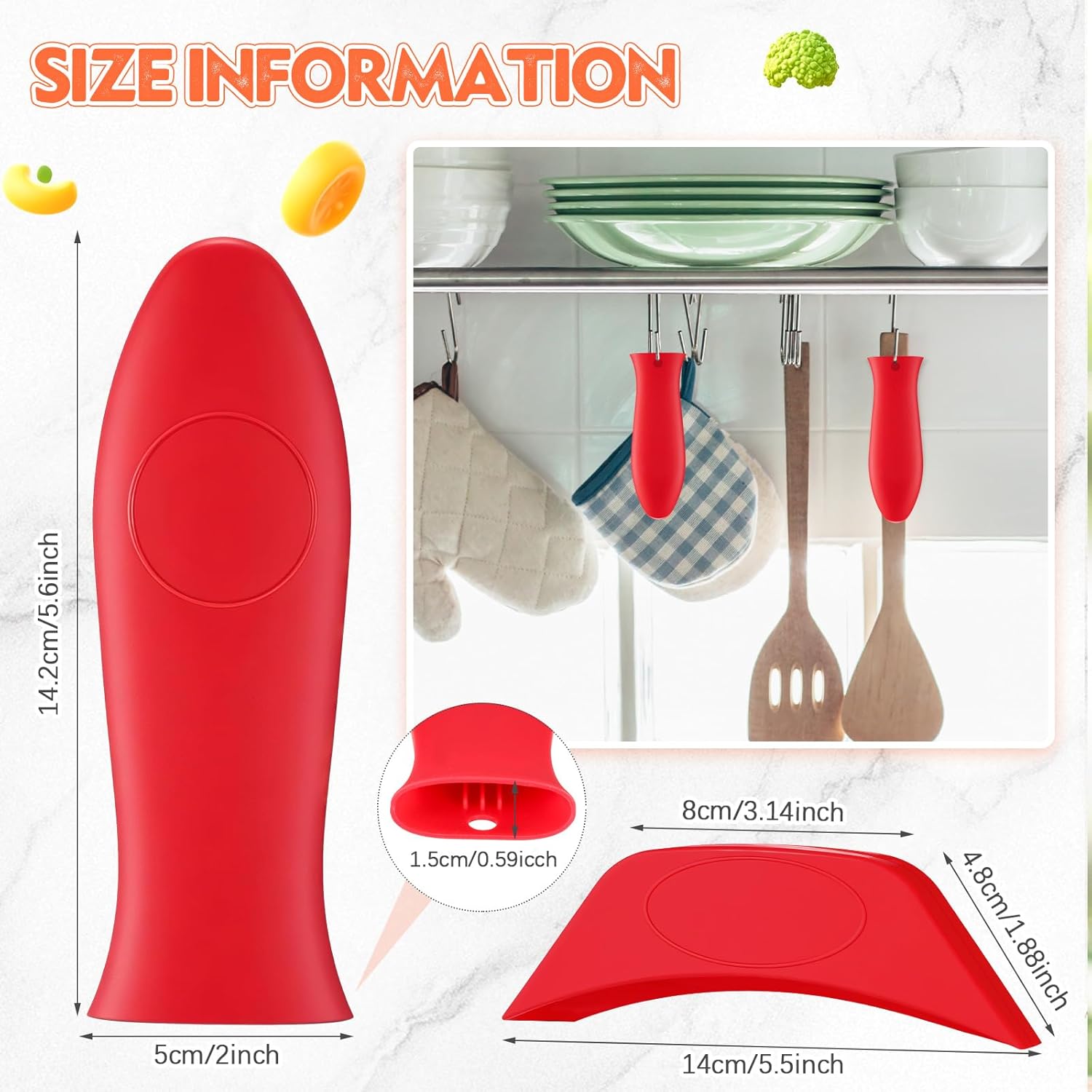 - Package Contents: our package includes 4 red cast iron handle covers, sufficient quantity for your daily use and replacement; The handle holder measures about 5.7 x 2 inches; The assist handle holder measures 5.5 x 1.9 inches, suitable for most pots and pans