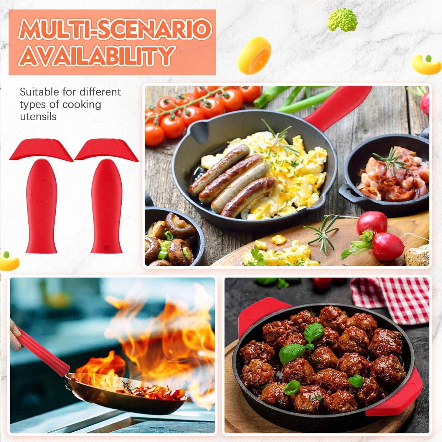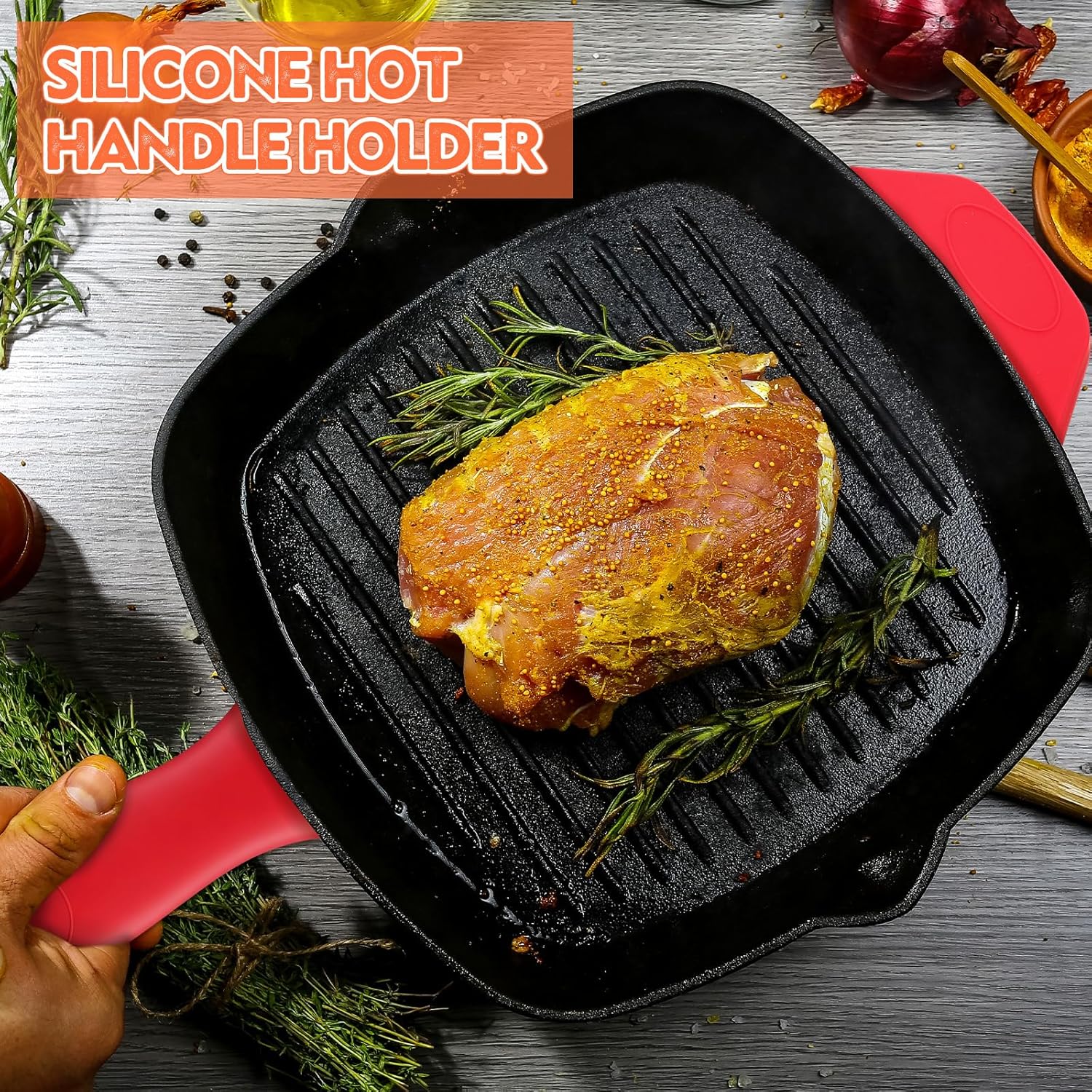 - Anti Slip Design: the silicone pot handle cover has a special anti slip texture design and silicone ribs inside, which can fit your cast iron skillet tightly to prevent it from falling off and is safer to use