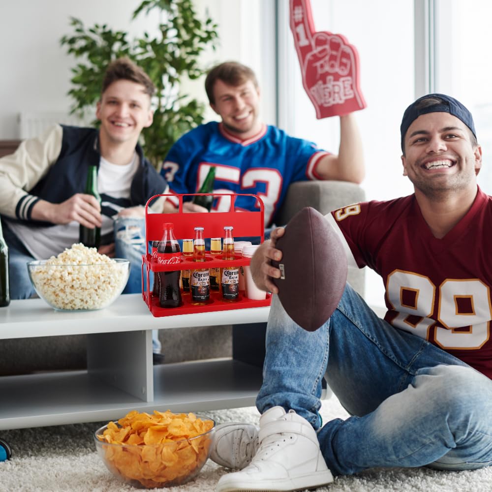 Bodaon 8 Cup Drink Carrier with Handle, Plastic Cup Carriers for Drinks, Drink Holder for Car, GrubHub/Eats Doordash Accessories, Portable Foldable Reusable Mobile, Use for Food Delivery Bag, Red