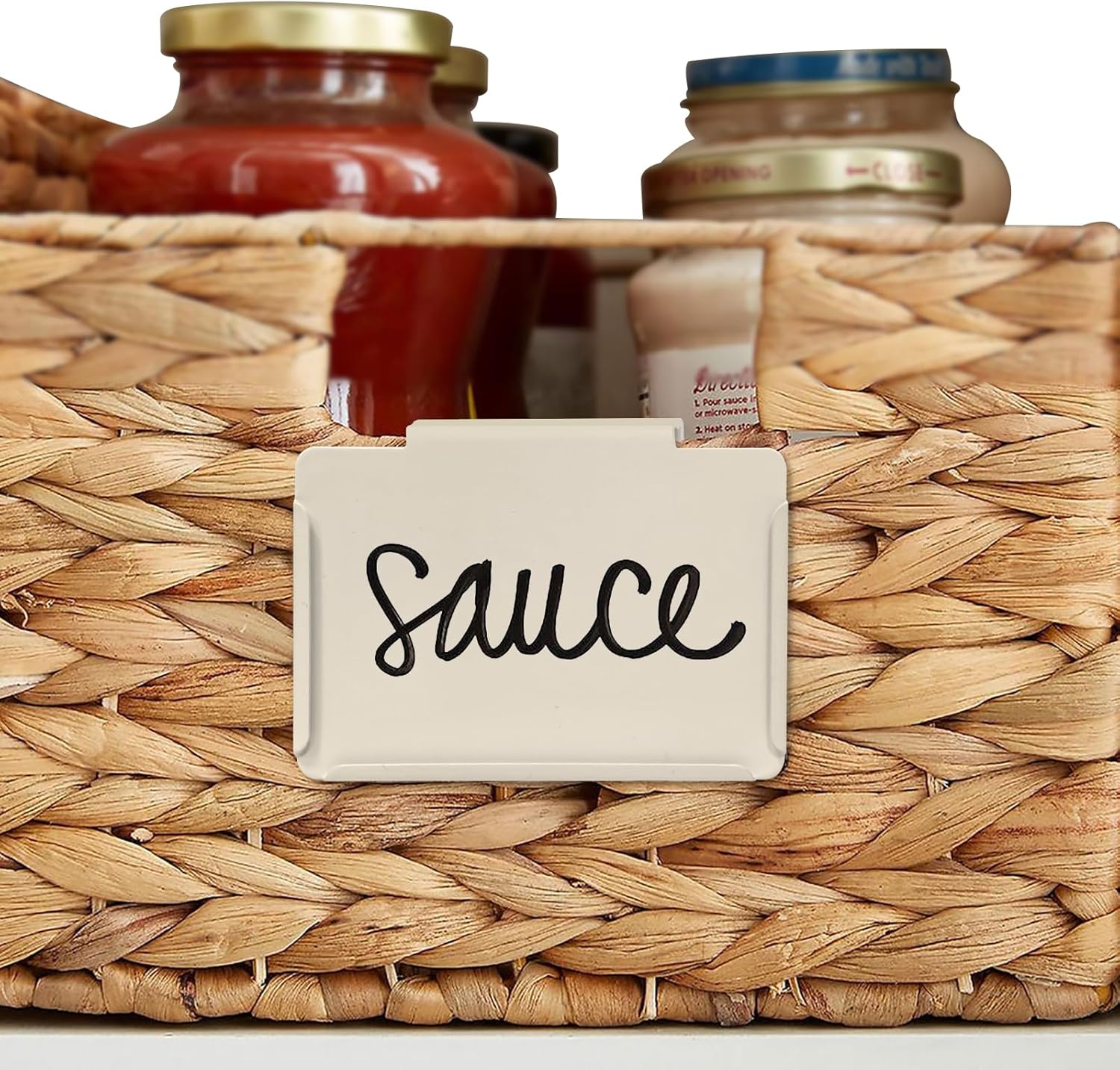 - SUPER VALUE & PRACTICAL BONUS: Item includes 18 PACK metal basket label holders in cream and 4 PACK white chalk makers as a practical BONUS. A small investment for a more functional organization and storage system. Everything you need to organize your home pantry is here. Dimensions: 3-1/2"L x 2-5/8" H.