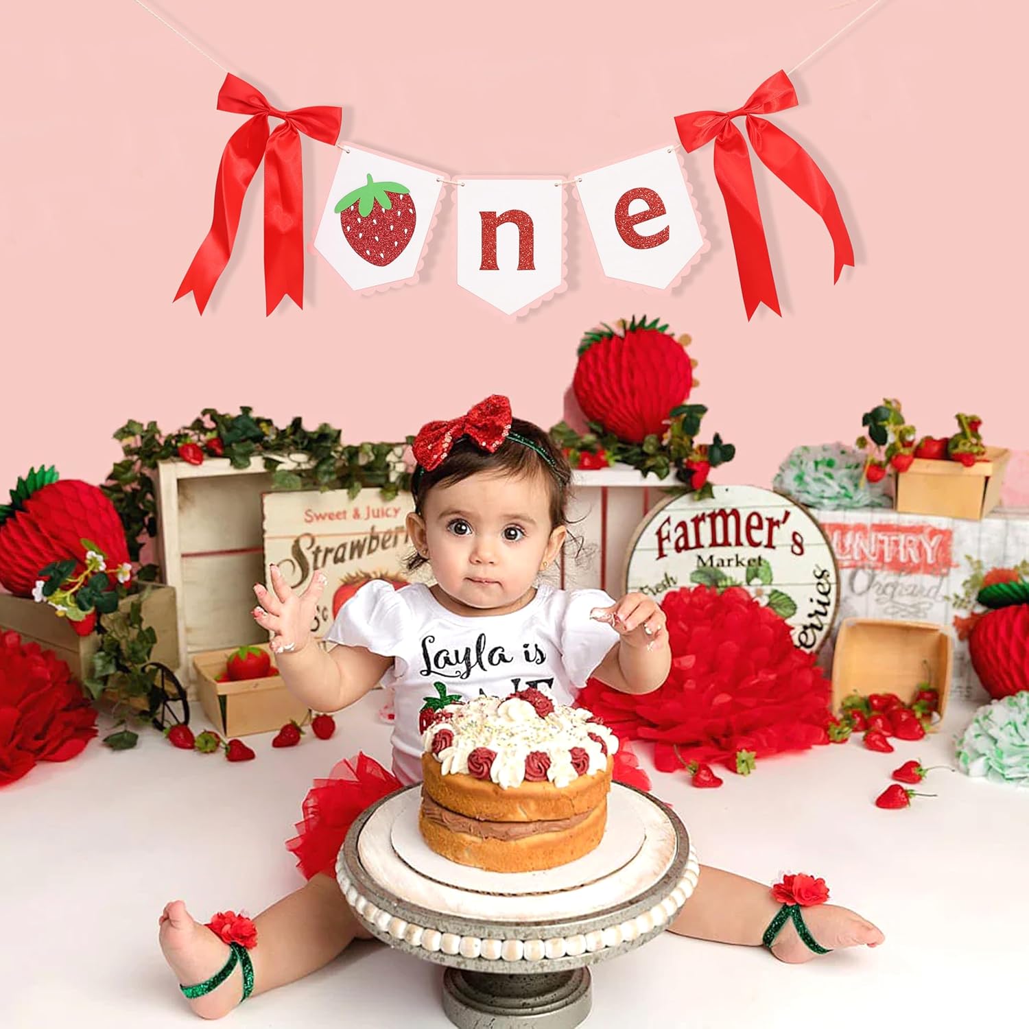 Strawberry First Birthday High Chair Banner - Strawberry Berry One 1st Birthday Highchair,Fruit Themed 1st Party Decorations,Sweet One Highchair Banner (Strawberry one banner)