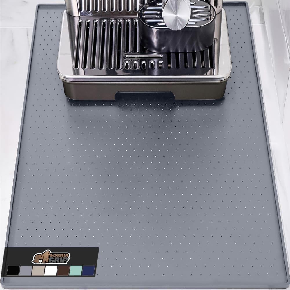 GORILLA GRIP Silicone Coffee Mat, 18x28, Espresso Drink Bar Station Accessories, Waterproof Heat-Resistant Dish Drying Mats, Stay in Place on Kitchen Counter, Home Kitchen Decor Essentials, Gray