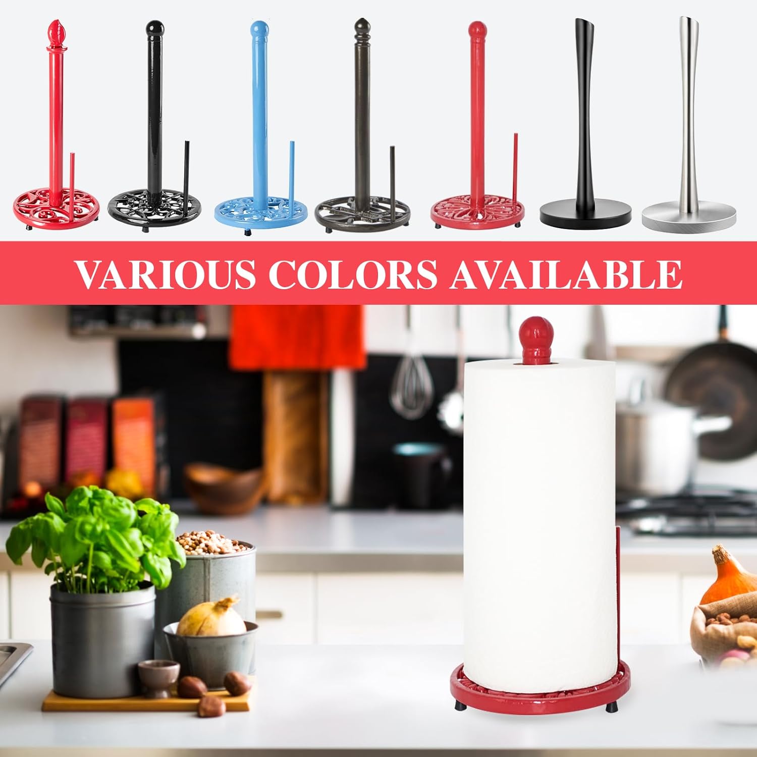 JOGREFUL Paper Towel Holder Stand, Cast Iron Kitchen Paper Towel Countertop Vintage Stand with Weighted-Base, Bathroom Organization for Family Standard Large Size Roll Paper, Mistletoe Base, Red