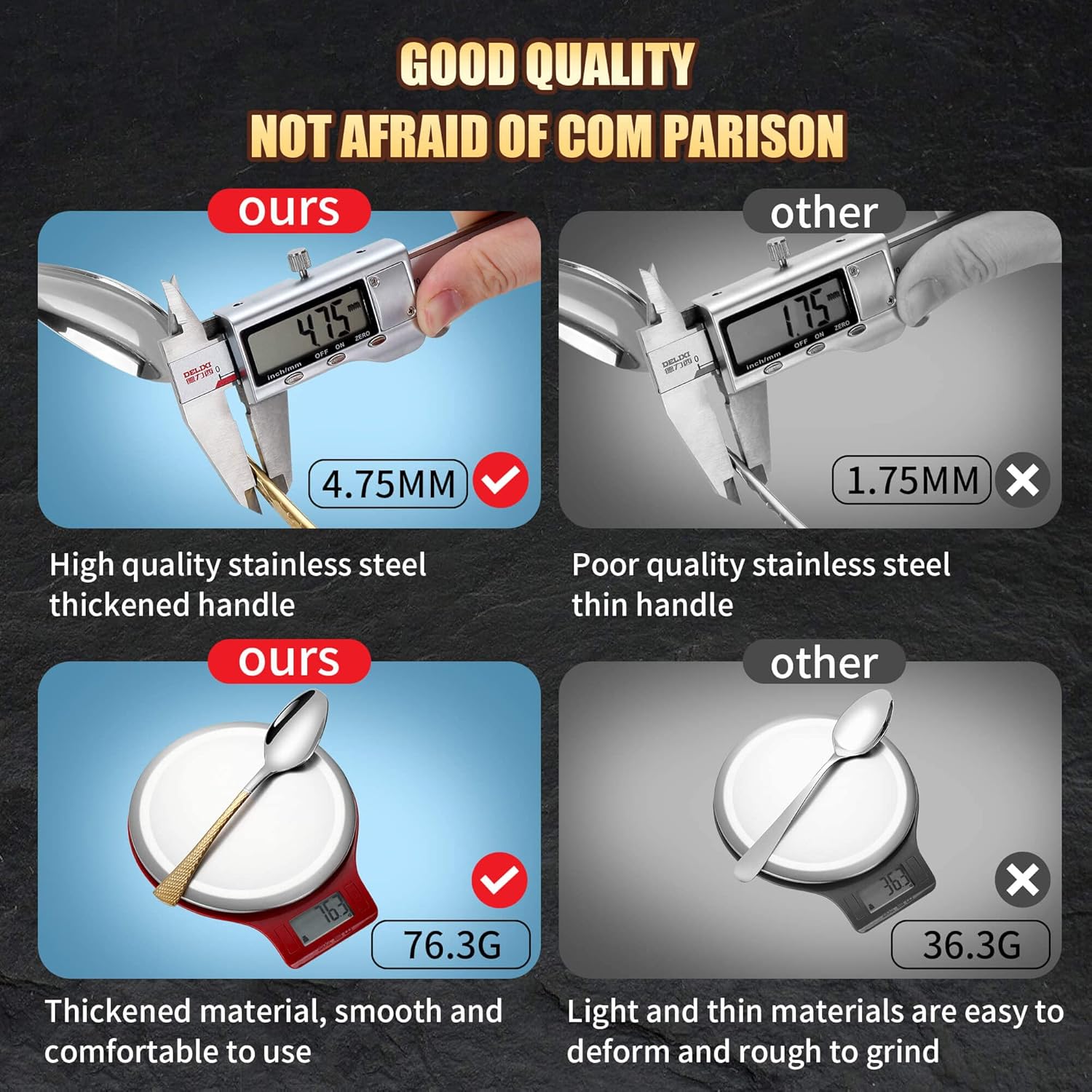 - Premium Stainless Steel Design : Our cutlery set uses high-quality stainless steel, which is not only strong, durable but also easy to clean. The polished surface makes your dining experience more enjoyable