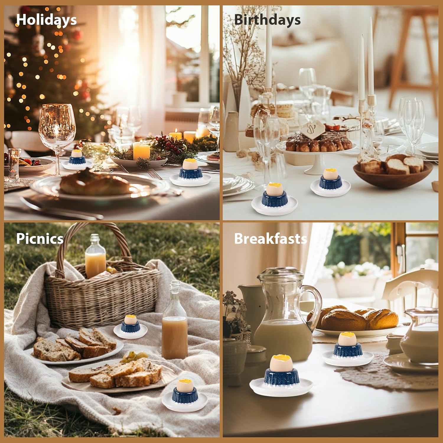 - Elegant Egg Cups Set of 2: Enhance your breakfast with these ceramic egg cups in blue and beige. Designed for boiled eggs, they add elegance to your table. Use as Easter egg cup, decorative egg holder, or soft boiled egg holder for daily meals