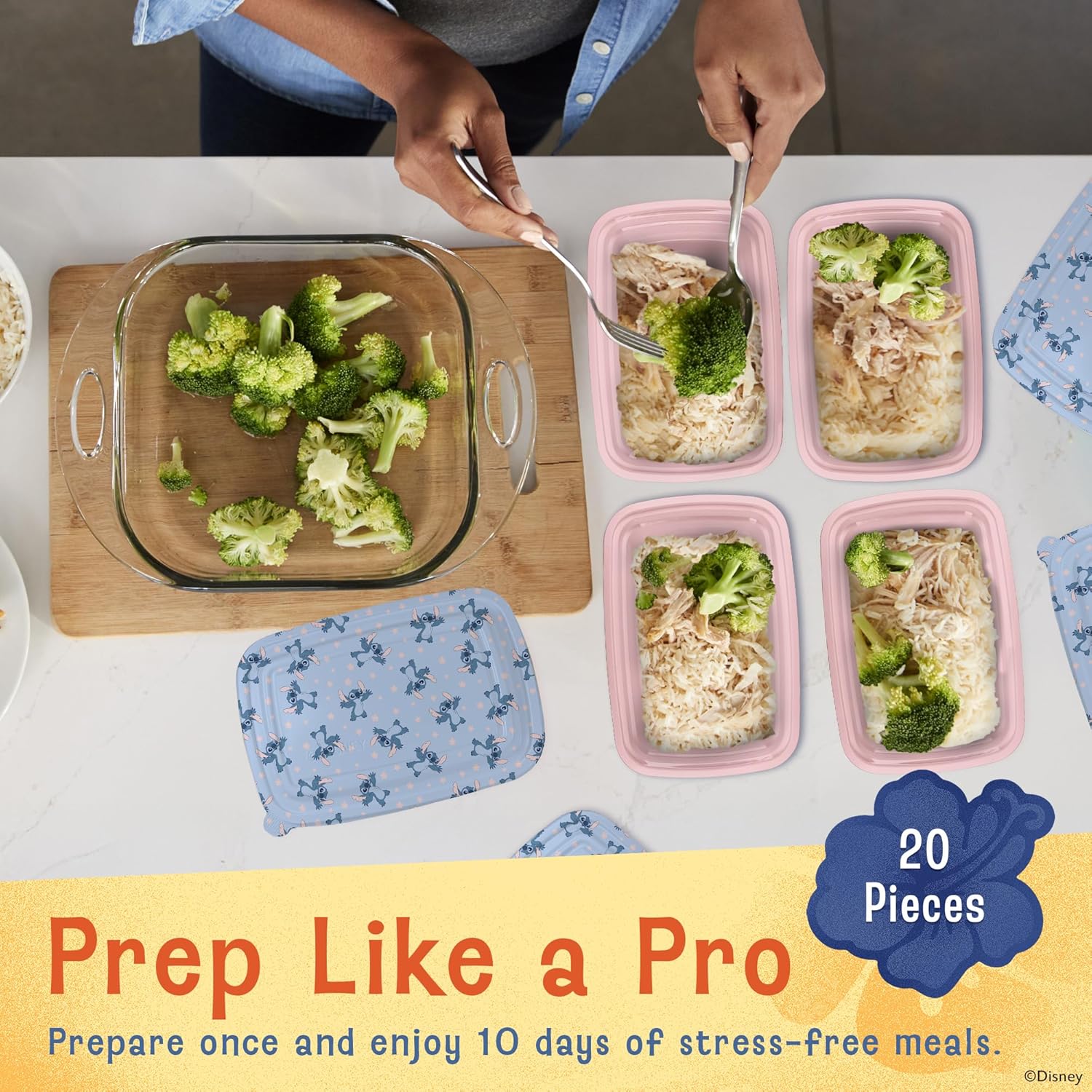 Disney Meal Prep Containers - 20-Piece Reusable Food Containers with Lids - Freezer, Microwave & Dishwasher Safe - Featuring Mickey & Minnie, Lilo & Stitch