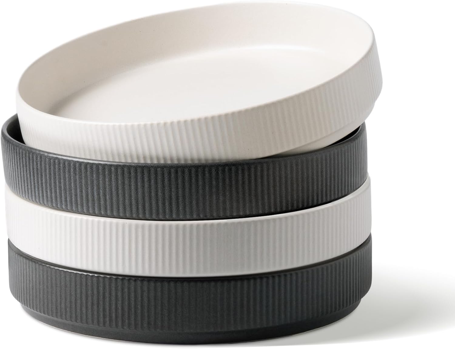 famiware Star 8.25" Pasta Bowls, Large Dinner Bowls Set of 4, Salad Bowl Plates, Shallow Bowls for Eating, Dark Charcoal & White Full Glaze Matte