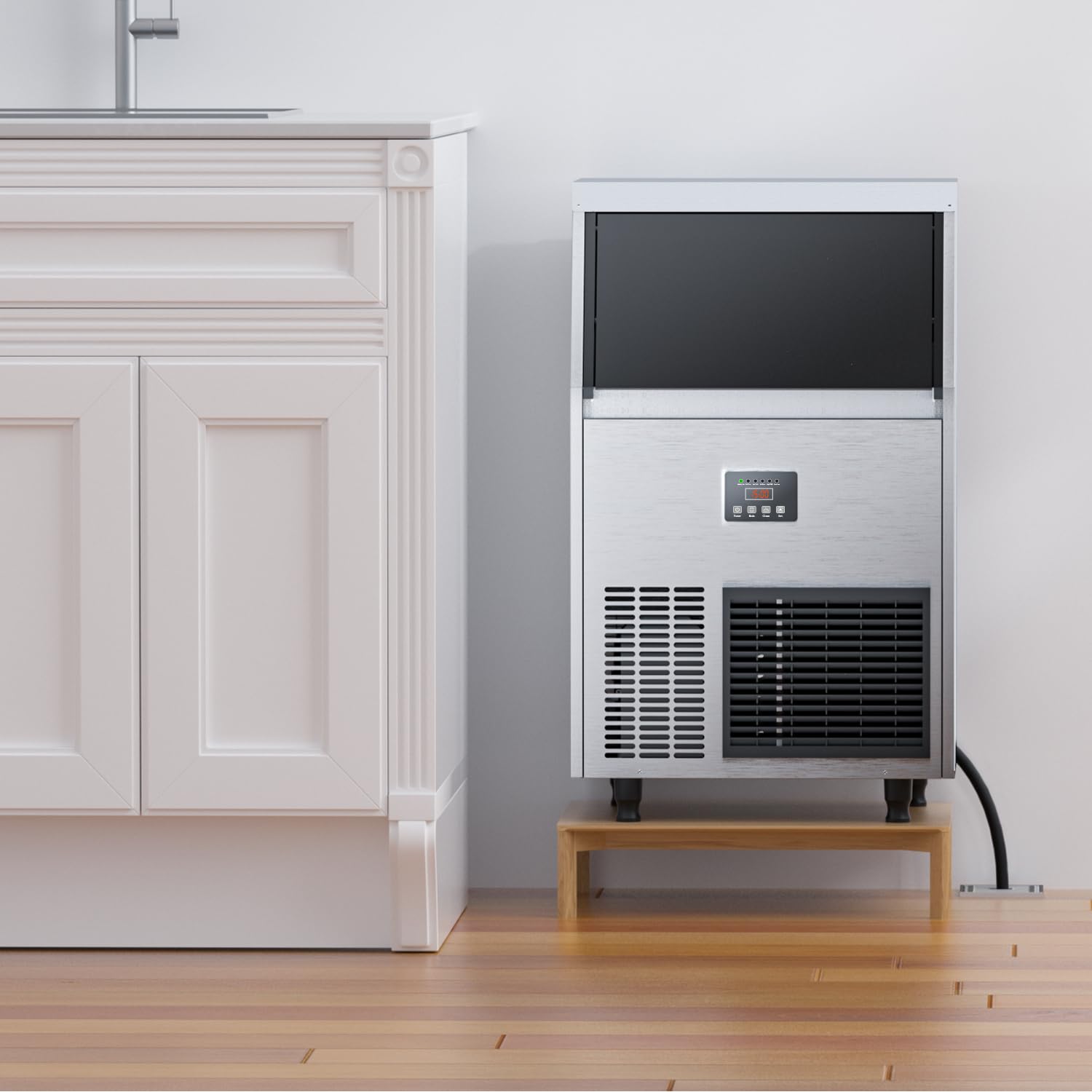 - Efficient Production Capacity: Using a highly efficient and powerful compressor for fast ice-making, the commercial ice machine can quickly produce up to 200 pounds of ice cubes daily. The self-contained 24 lbs storage capacity makes the ice machine an ideal choice for bars, restaurants, hotels, etc., ensuring sufficient ice for any occasion
