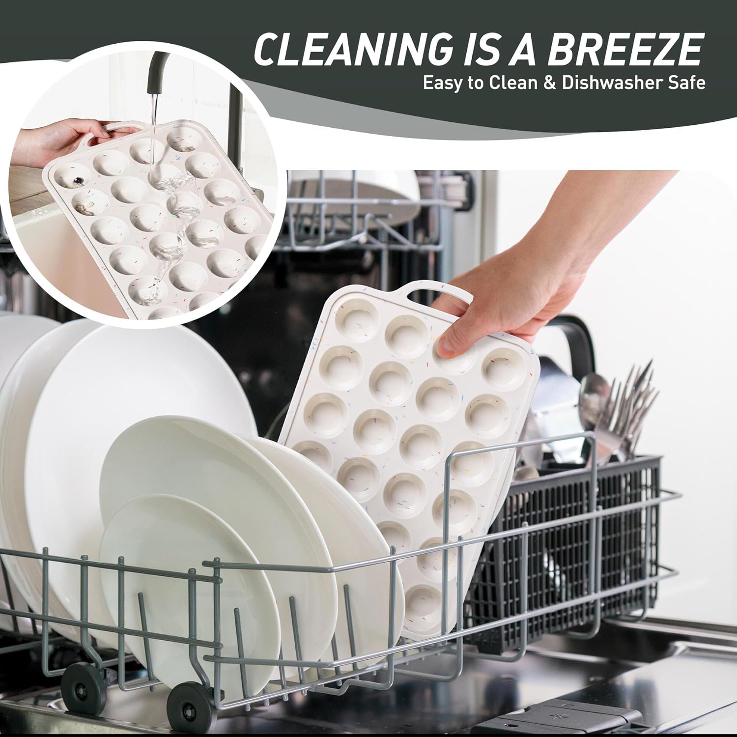 - 【Effortless Release Every Time】Experience 1-second demolding! Simply press the flexible food-grade silicone base to pop out cupcakes intact - no scraping or greasing required. Ideal for sticky recipes like caramel pecan muffins or gooey chocolate lava cakes. Our baking cupcake muffin pan can be safely placed in the dishwasher, and the silicone baking cupcake muffin pan material reduces oil residue by 85% compared to metal baking pans, making it easy to rinse even with simple running water.