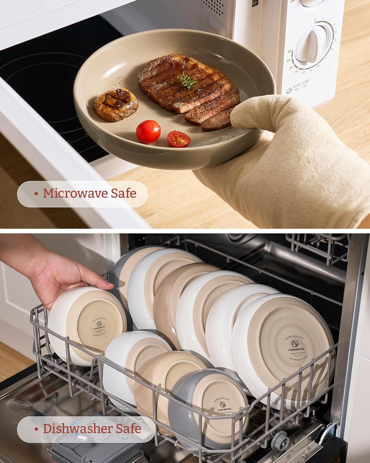 - 【DISHWASHER AND MICROWAVE SAFE】Our pasta bowls have passed microwave and dishwasher safe testing at internationally accredited laboratories. Each plate and bowl is dishwasher safe and microwave safe