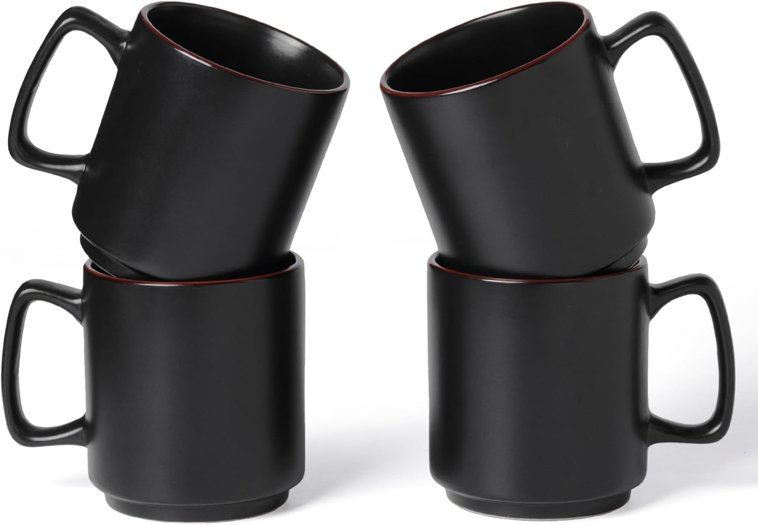 famiware Coffee Mugs Set of 4, Nebula 14oz Coffee Mugs, Ceramic Cup Set with Handle for Latte, Tea, Milk, Cappuccino, Cocoa, Matte Black