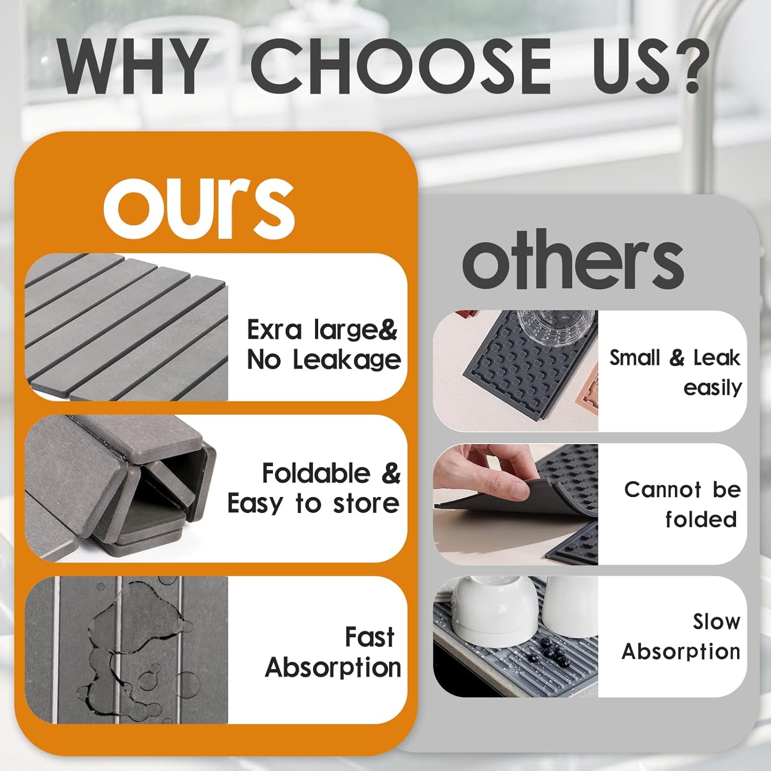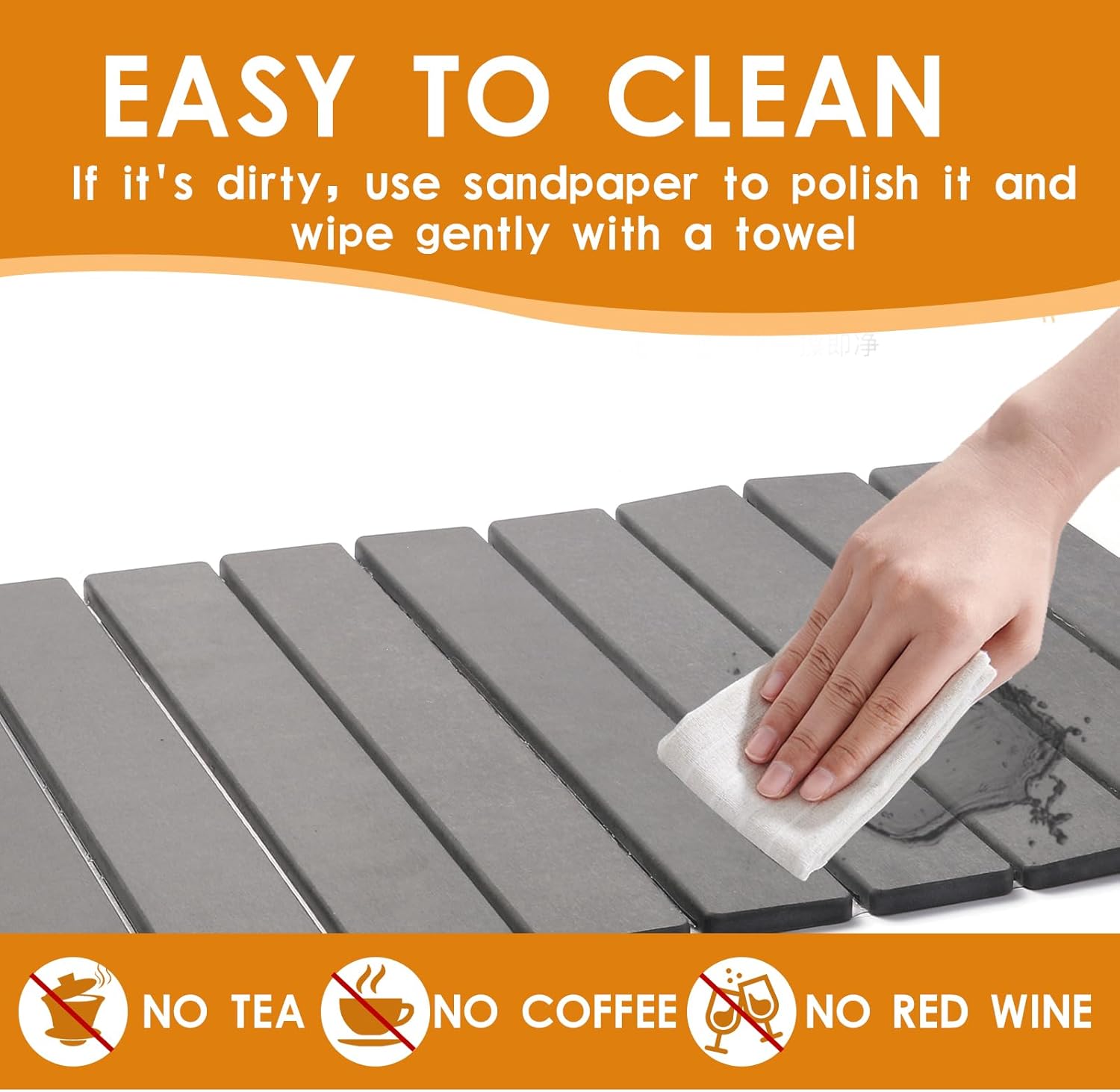 - 【Using Tips】: Please keep away from dark drinks, such as coffee or red wine on the stone dish drying water absorbing mat, or it may leave marks on it and can not be easy to clean. Please measure the size of your countertop before purchasing