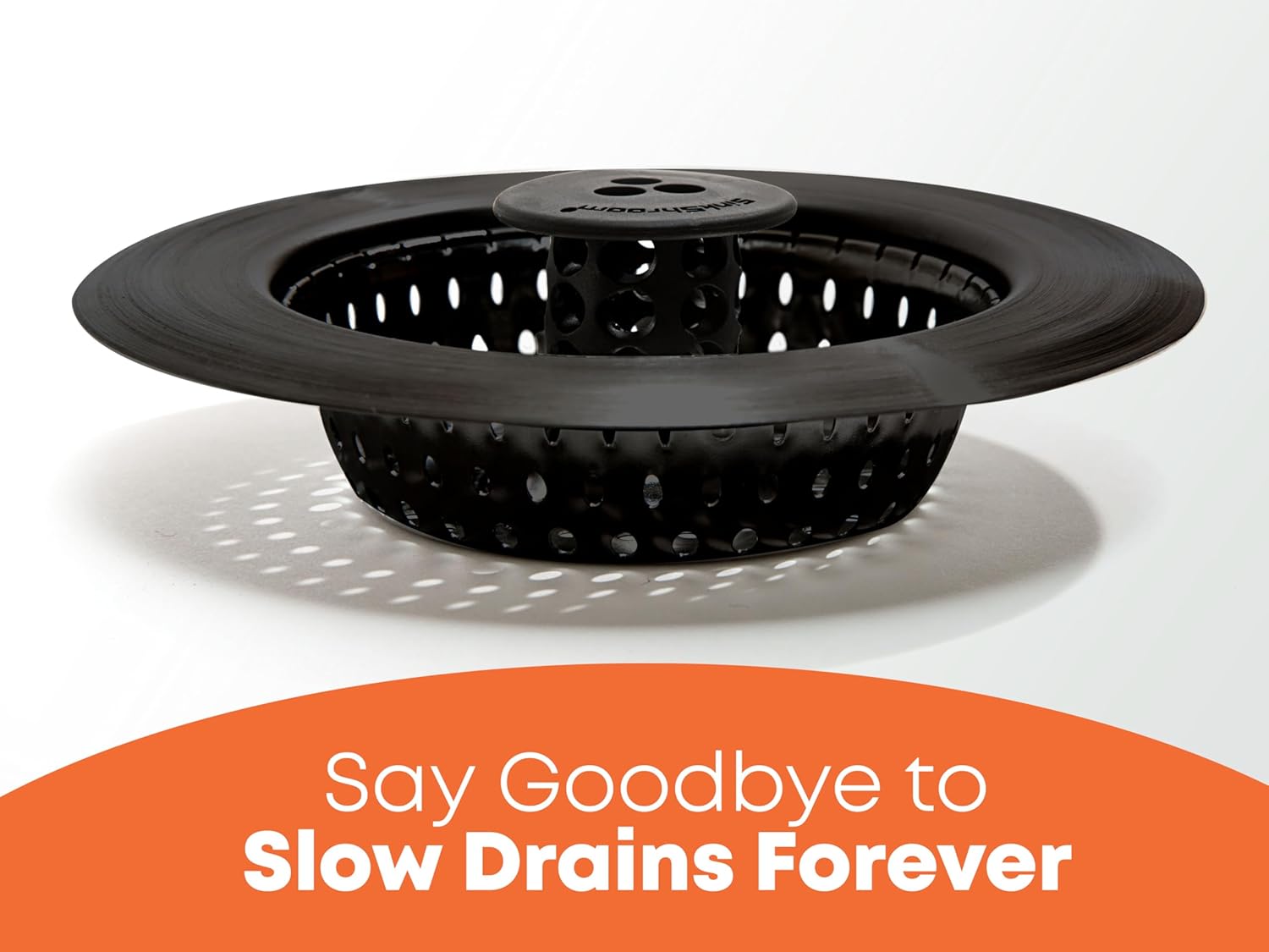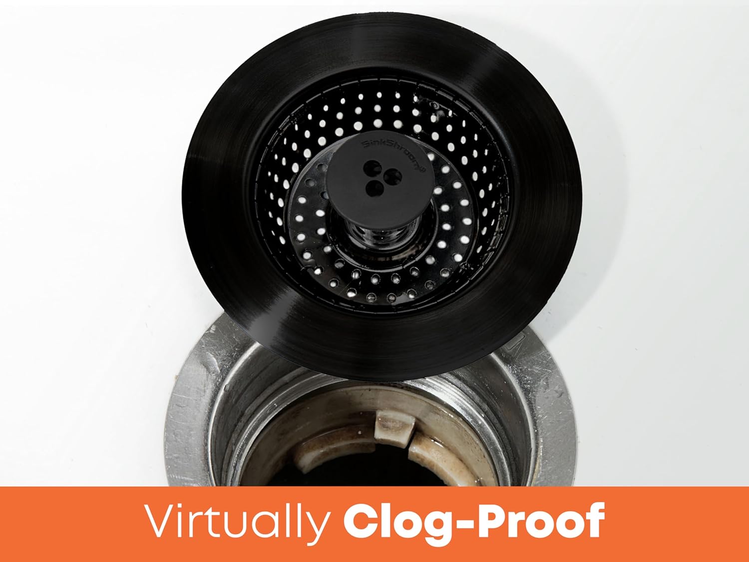 Kitchen SinkShroom Clog-Free Kitchen Sink Drain Strainer with Stopper - Sink Protector for Kitchen Sink, Stainless Steel, Matte Black