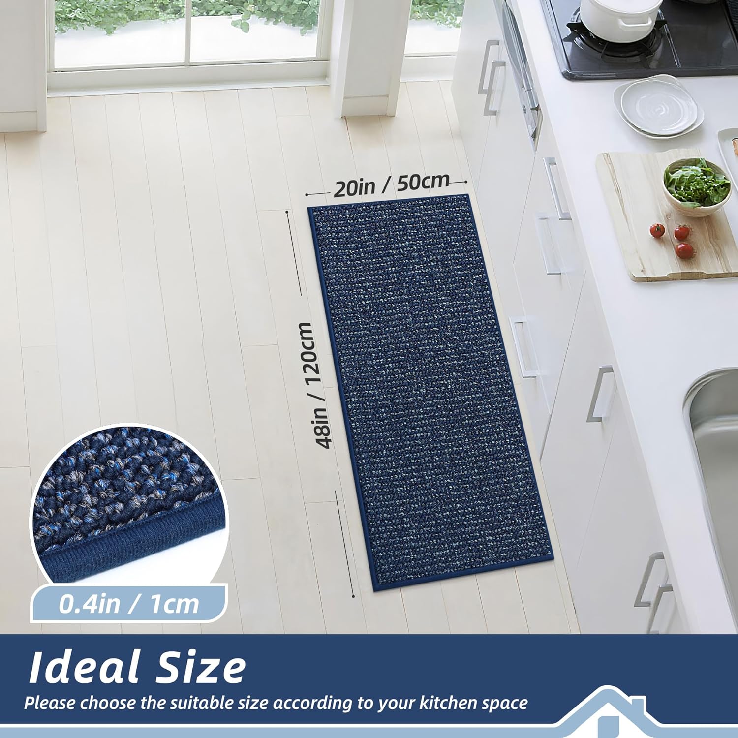 BEQHAUSE Kitchen Runner Rugs 20"x48", Non-Slip Kitchen Mats for Floor, Super Absorbent and Stain Resistant Kitchen Rug, Machine Washable Rugs for Kitchen, Hallway, Laundry & Sink, Blue