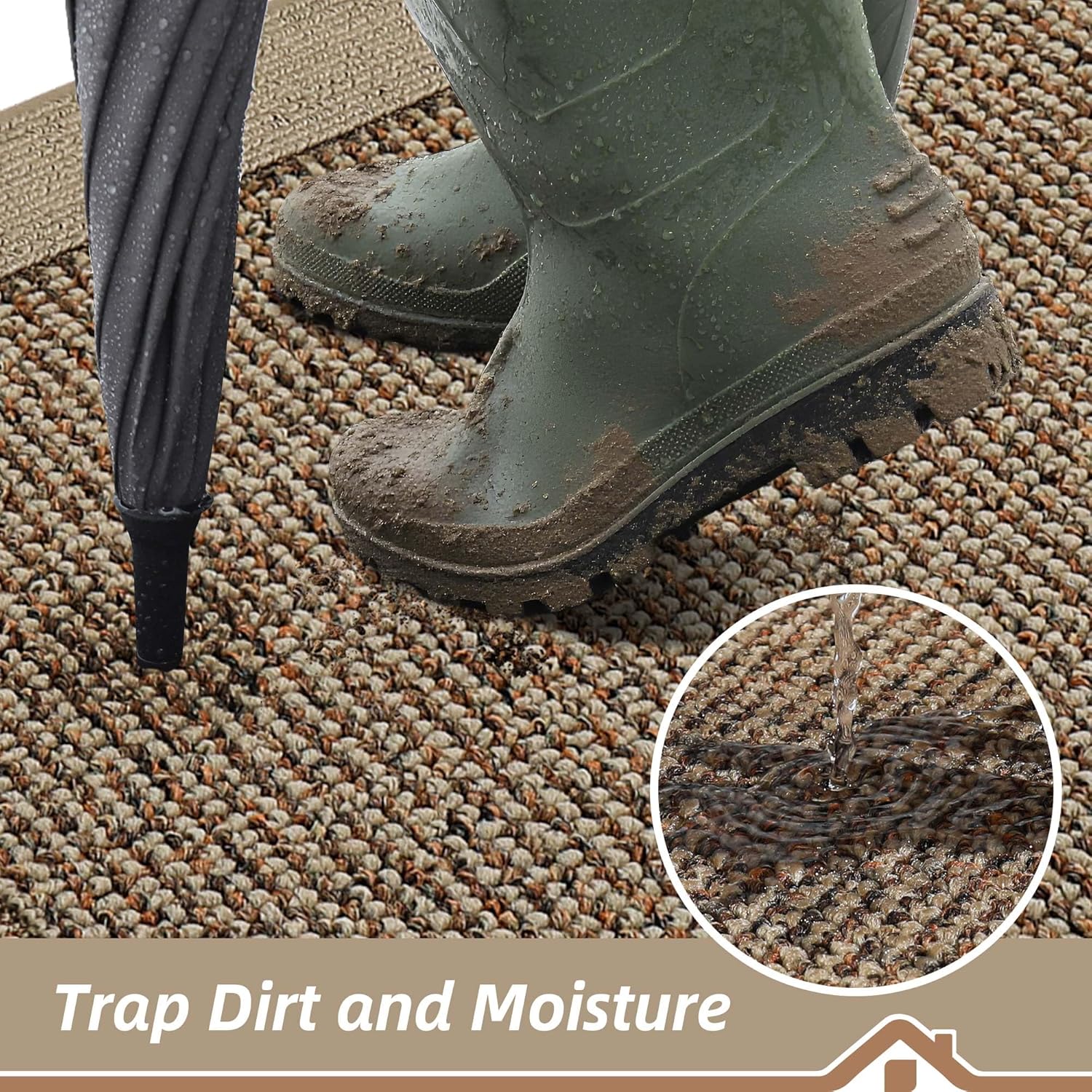 - Trap Dirt and Moisture: Our door mats are made of premium Polypropylene and extremely dense yarns, which are extremely stain-resistant. They can quickly scrape dirt off shoes, keeping the floors clean and dry. Widely used in any weather, especially rainy, snowy or muddy weather. Suitable for front door, back door, entryway, indoor entrance, etc.
