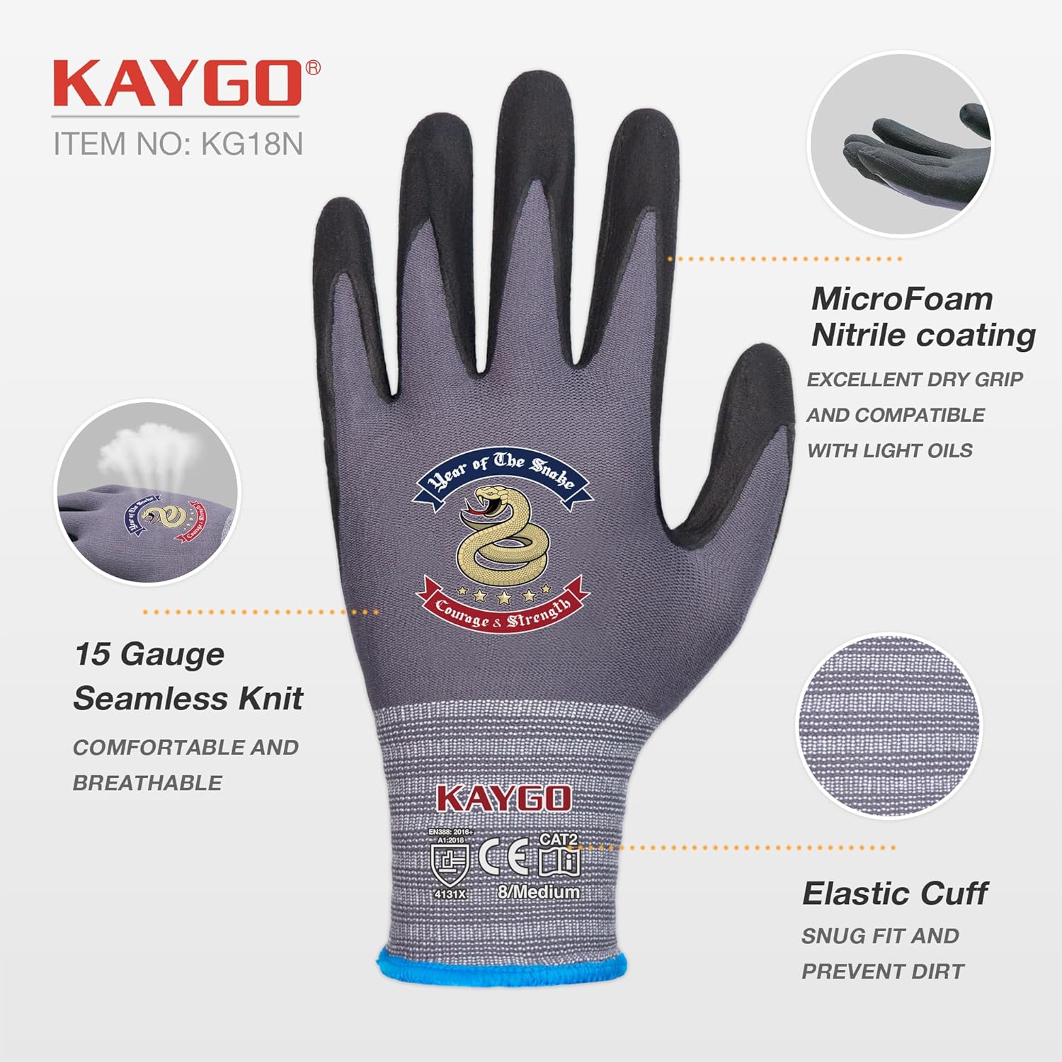 KAYGO Safety Work Gloves MicroFoam Nitrile Coated, 3 Pairs KG18NB,Seamless Knit Nylon Glove for Men and Women, Ideal for Automotive,Warehouse,Construction (XL,Gray)