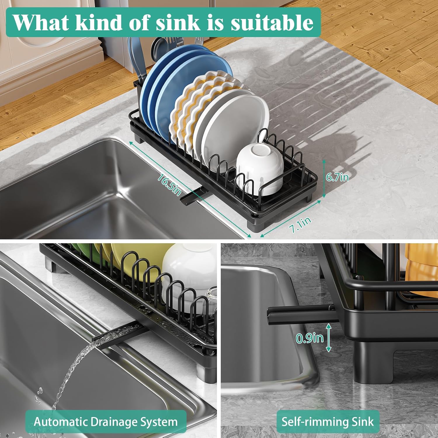- Thoughtfully Sized: Dish rack measures 16.5"D x 7.1"W x 6.7"H. EASY CARE: clean with mild soap and water; Drainboard safe only is dishwasher safe