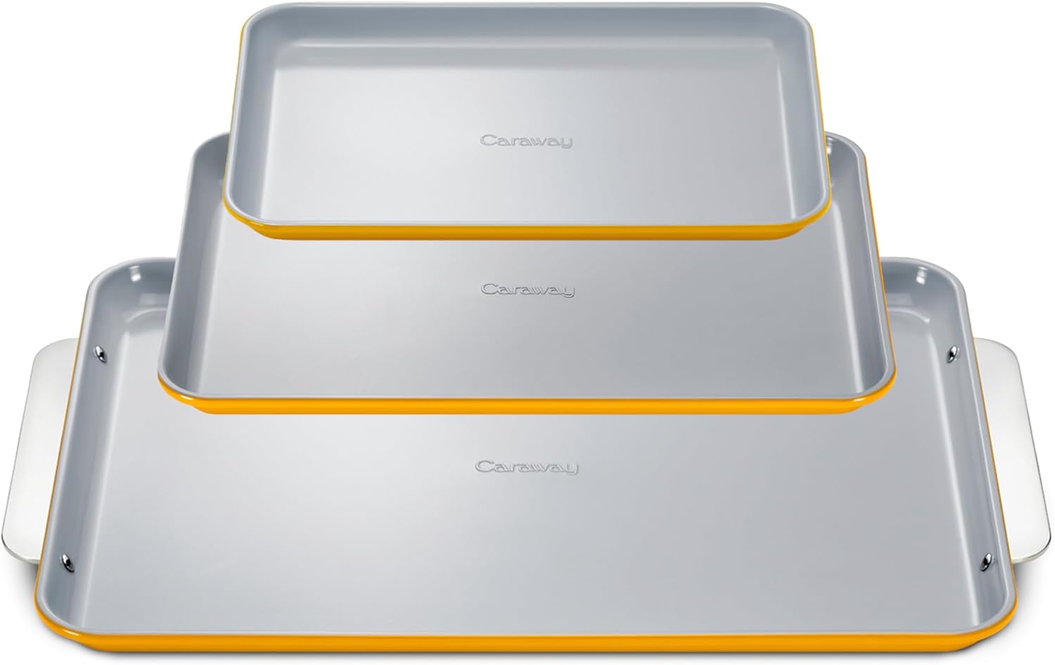 Caraway Non-Stick Ceramic Baking Sheet Trio - Naturally Slick Ceramic Coating - Non-Toxic, PTFE & PFOA Free - 18 x 13" Large, 15 x 10" Medium, & 9" x 13" Small - Marigold