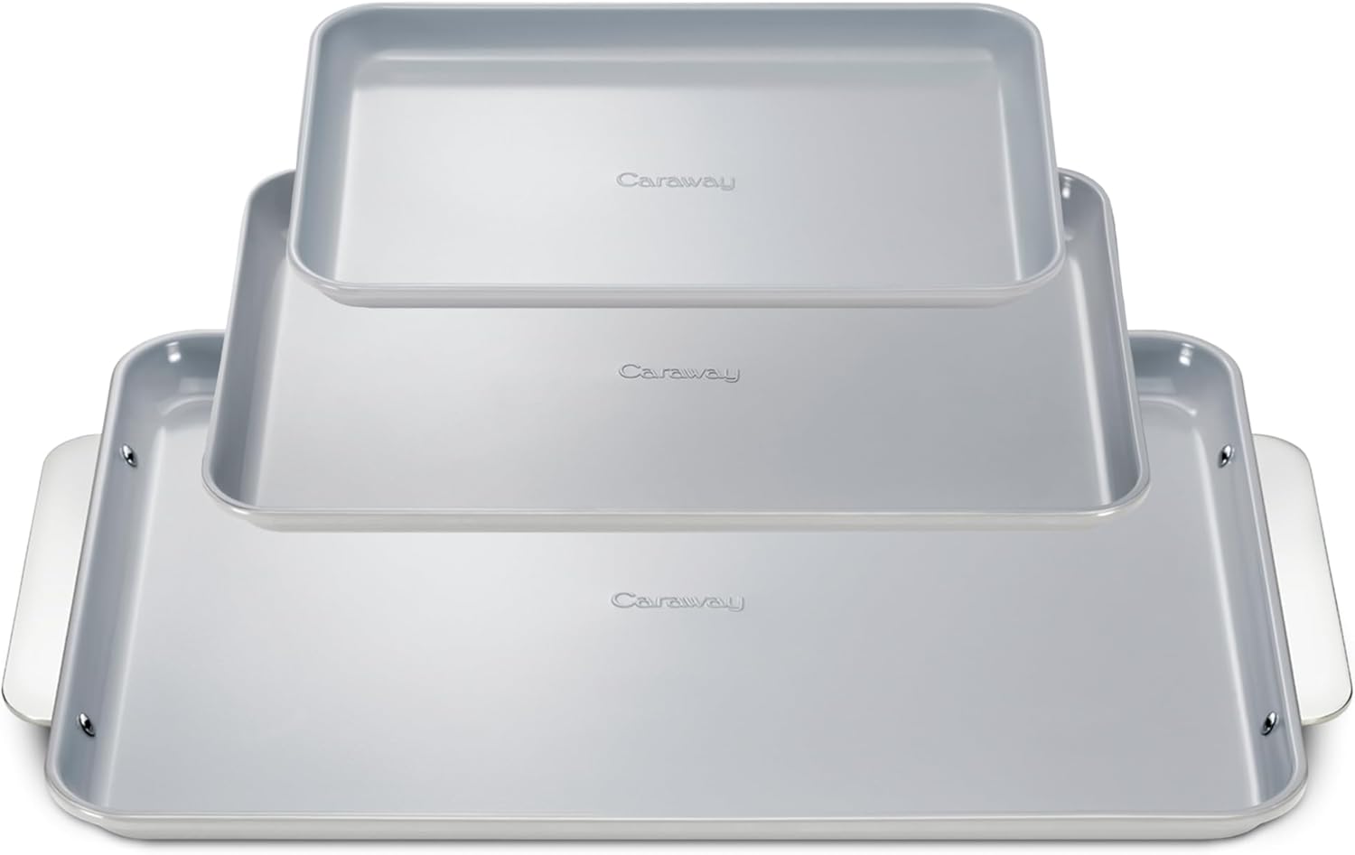 Caraway Non-Stick Ceramic Baking Sheet Trio - Naturally Slick Ceramic Coating - Non-Toxic, PTFE & PFOA Free - 18 x 13" Large, 15 x 10" Medium, & 9" x 13" Small - Gray