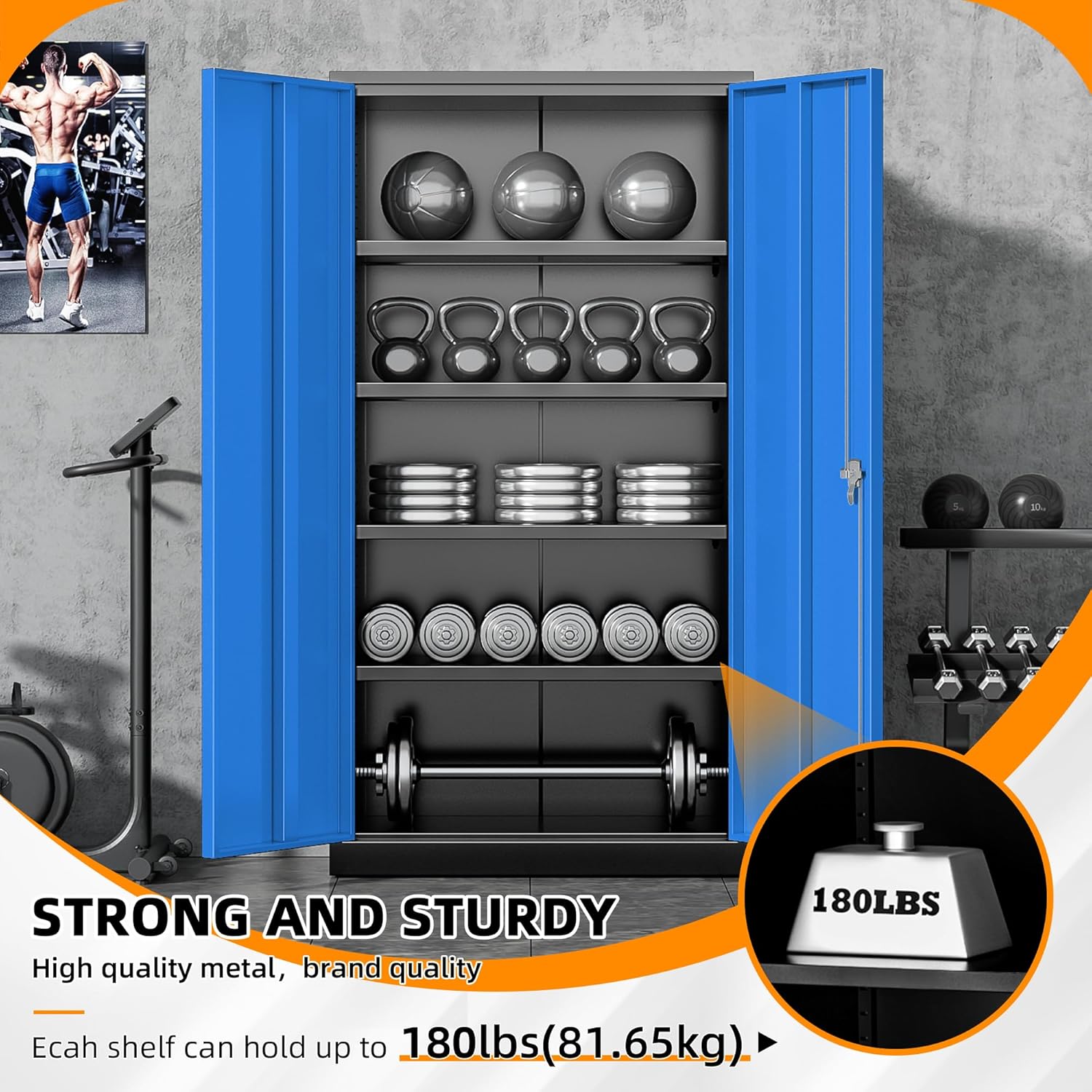 - 【4 Adjustable Shelves】:The metal cabinet is furnished with 2 doors, while the tool cabinet features 4 adjustable shelves to enhance its durability.Each shelf of black blue metal cabinet can hold up to 151 lbs, to store heavy tools, files, long size items, etc.