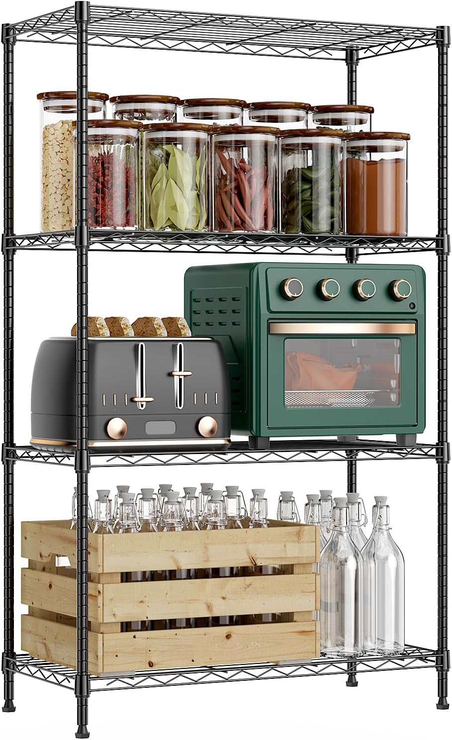 1000 lbs 4Tier Shelf Metal Storage Shelves Wire Rack Closet Organizers with Wheel for Garage Kitchen Bathroom Laundry Black 13.7" D x 29.5" W x 47.2" H