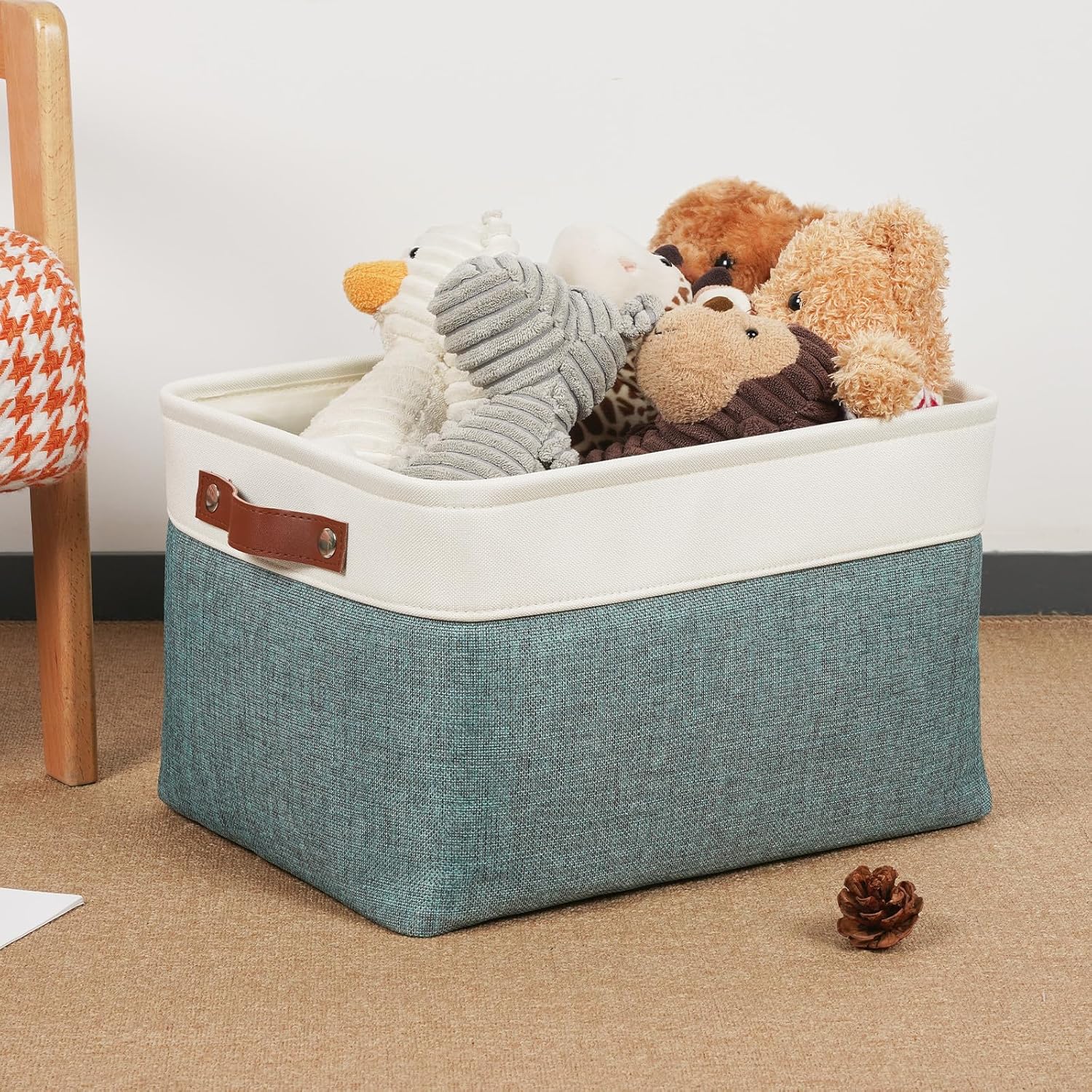 DULLEMELO Storage Baskets for Organizing,Rectangular Fabric Storage Bins with Handles for Office,Bedroom(3-Pack -15 inch X 11 inch X 9.5 inch, White&Dark Green)