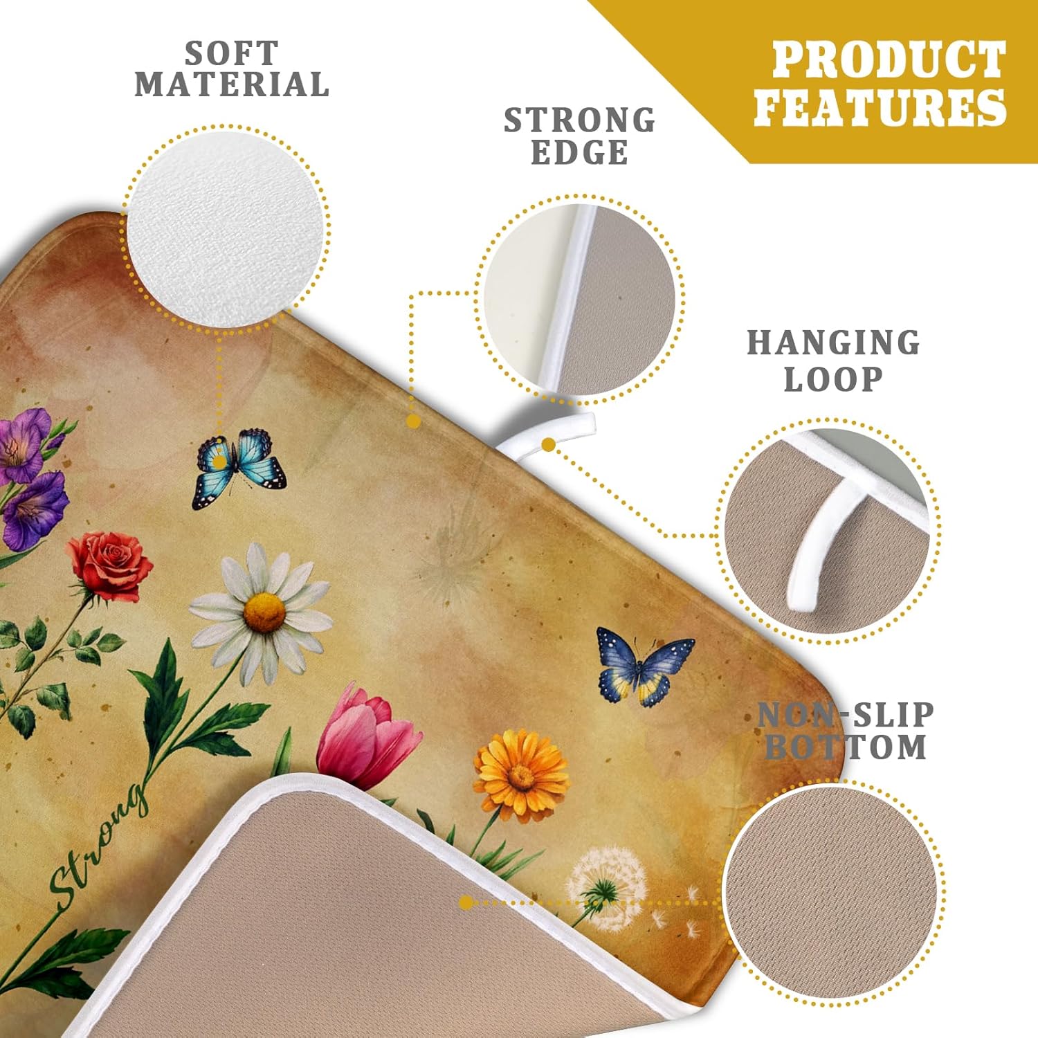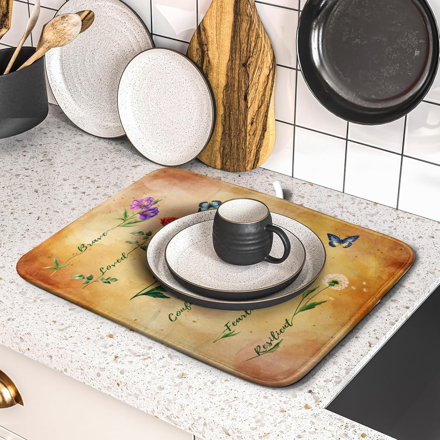 Inspirational Words Dish Drying Mat - Vintage Floral Kitchen Dish Dry Mat for Women 16 X 18 Inch