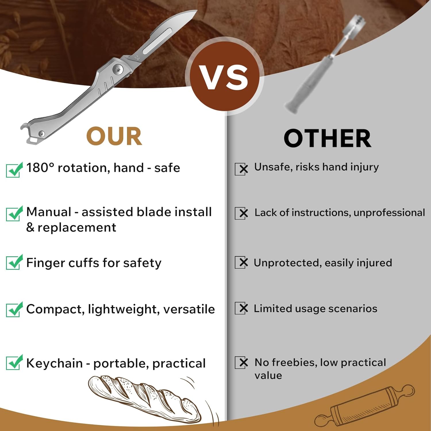 - Ultra-Sharp & Portable Design:Beautifully designed to hold the lame firmly in place with a comfortable handle to achieve outstanding scoring results.It ensures effortless cutting for bread scoring and outdoor tasks, while foldable keychain design locks securely and fits in pockets for on-the-go convenience